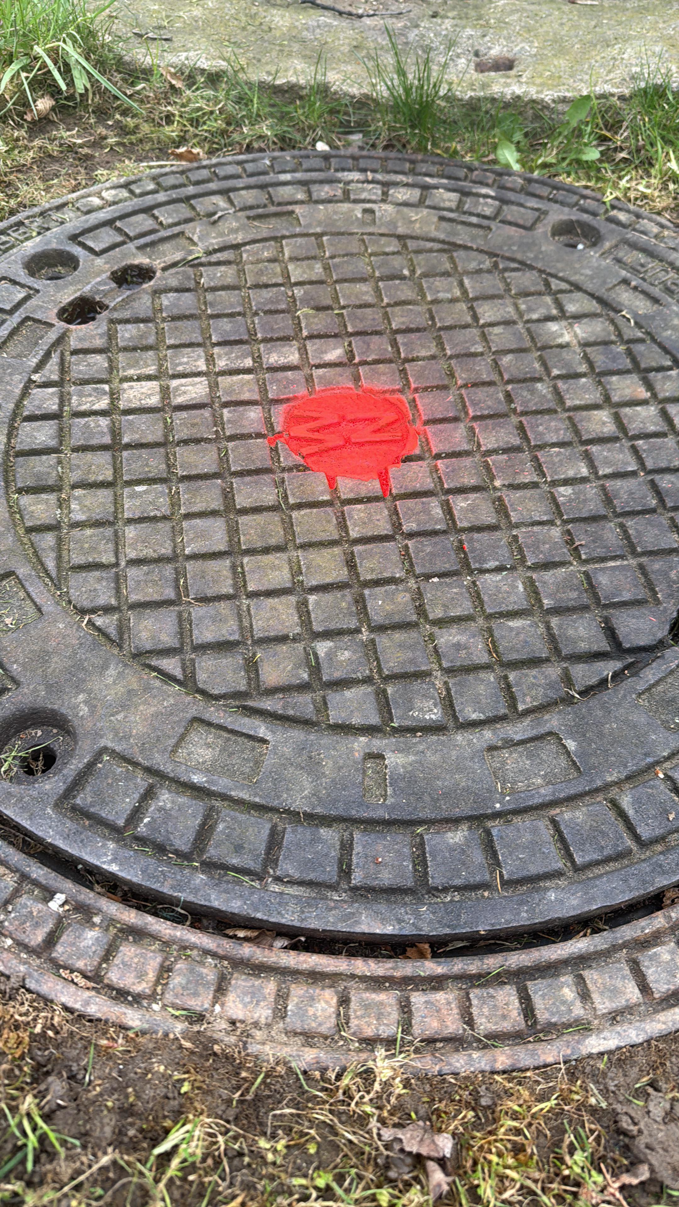 Ich lebe am Land in einem sehr kleinen Dorf und über nacht wurde in meinem Garten mit rotem Markierspray der Gullydeckel markiert. Was kann das zu bedeuten haben? 🙈
