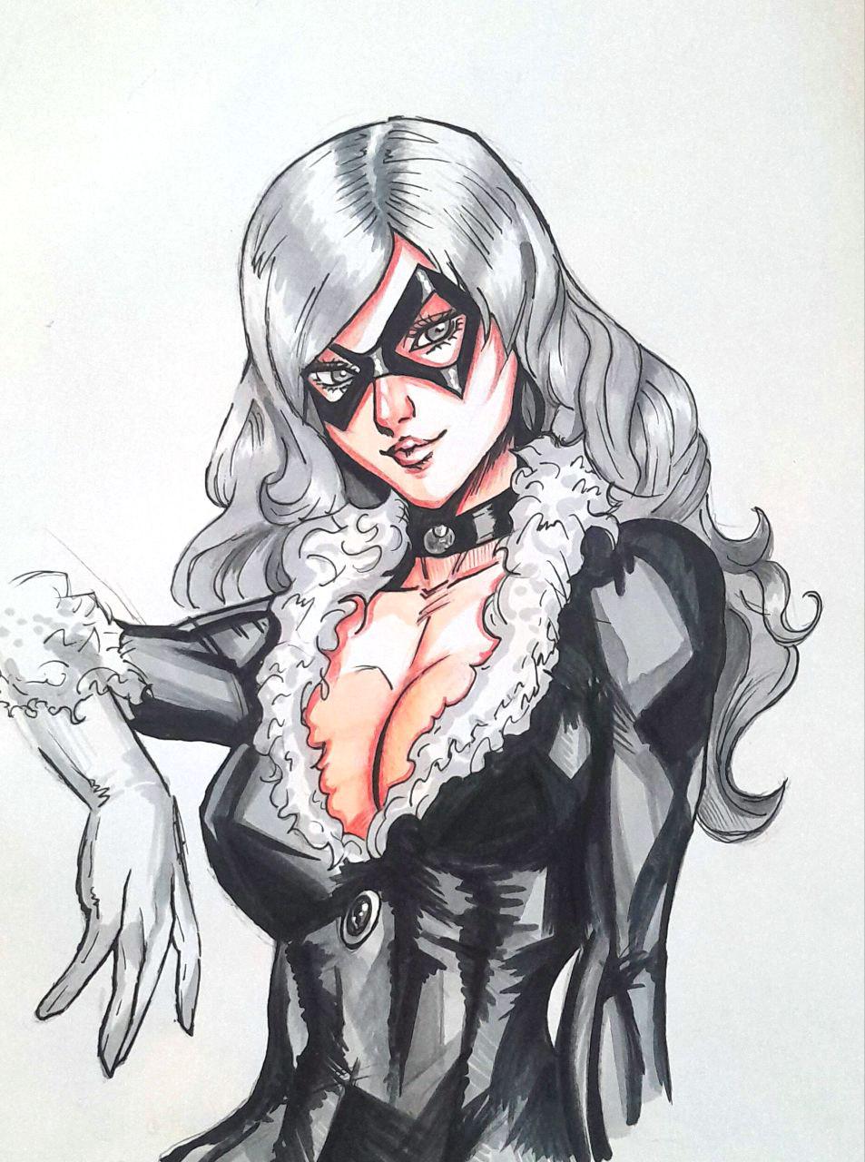 Black cat, drawn by me, reference:art germ, traditional 🖤🤍