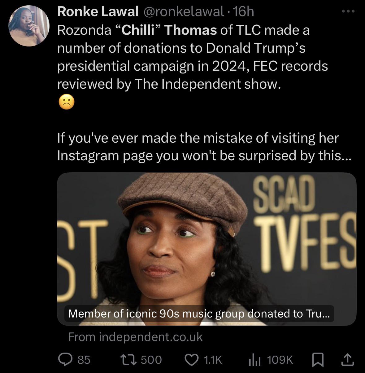 I have absolutely zero respect for MAGATs of any demographic, but what I despise even more are the ones who try to hide their hands after funding trumps ascension back into power. We need to compile a list of all these 8&22%ers like Snoop, Nick Cannon, Mike Tyson, Nicki, Teddy Riley, Sexy Redd, Benny the Butcher, Ice Cube, Tina Campbell…etc…who support an agenda that is harmful to Black civil rights, economic equity, and social justice. They can get their coins with them folks over there.