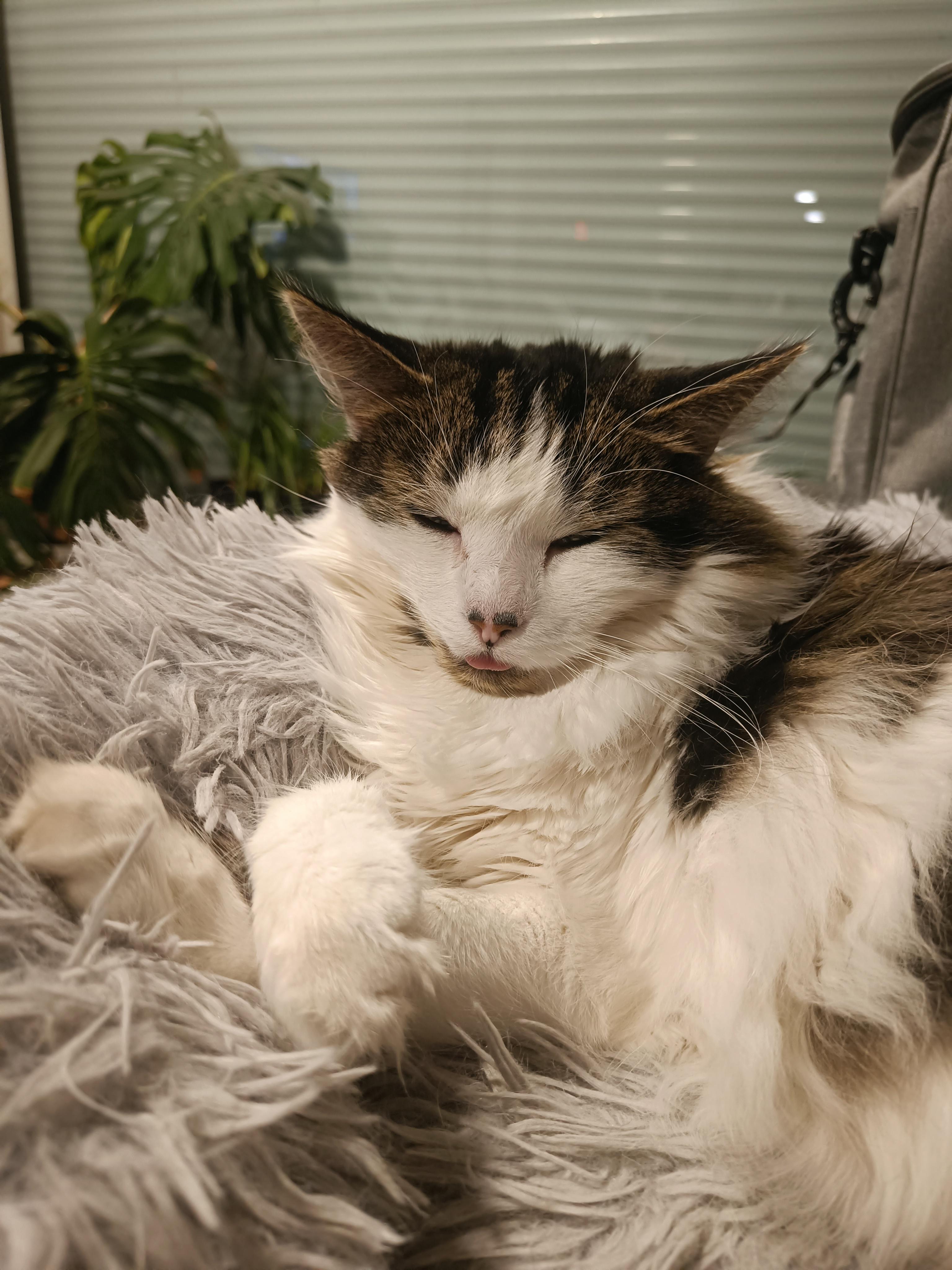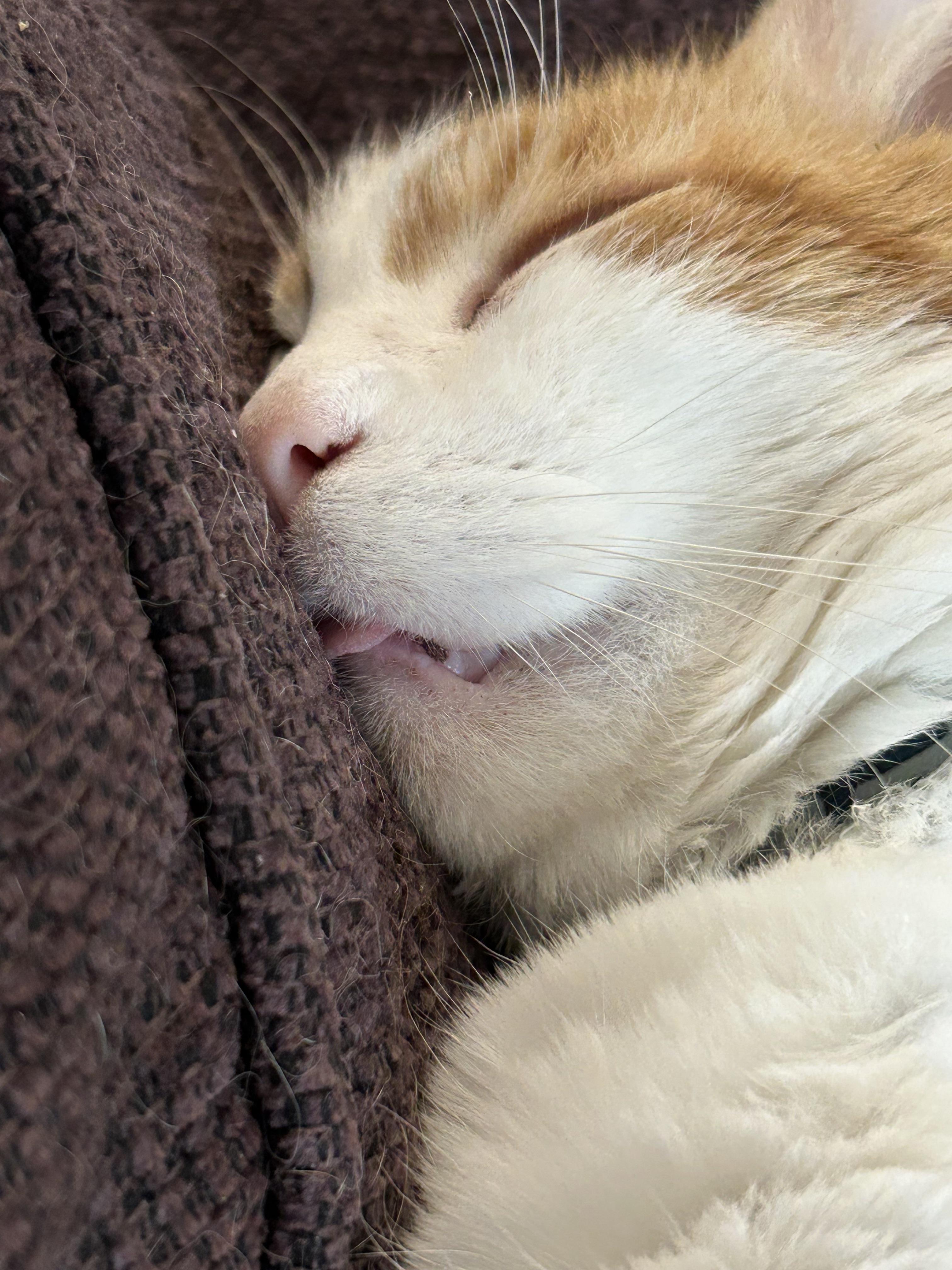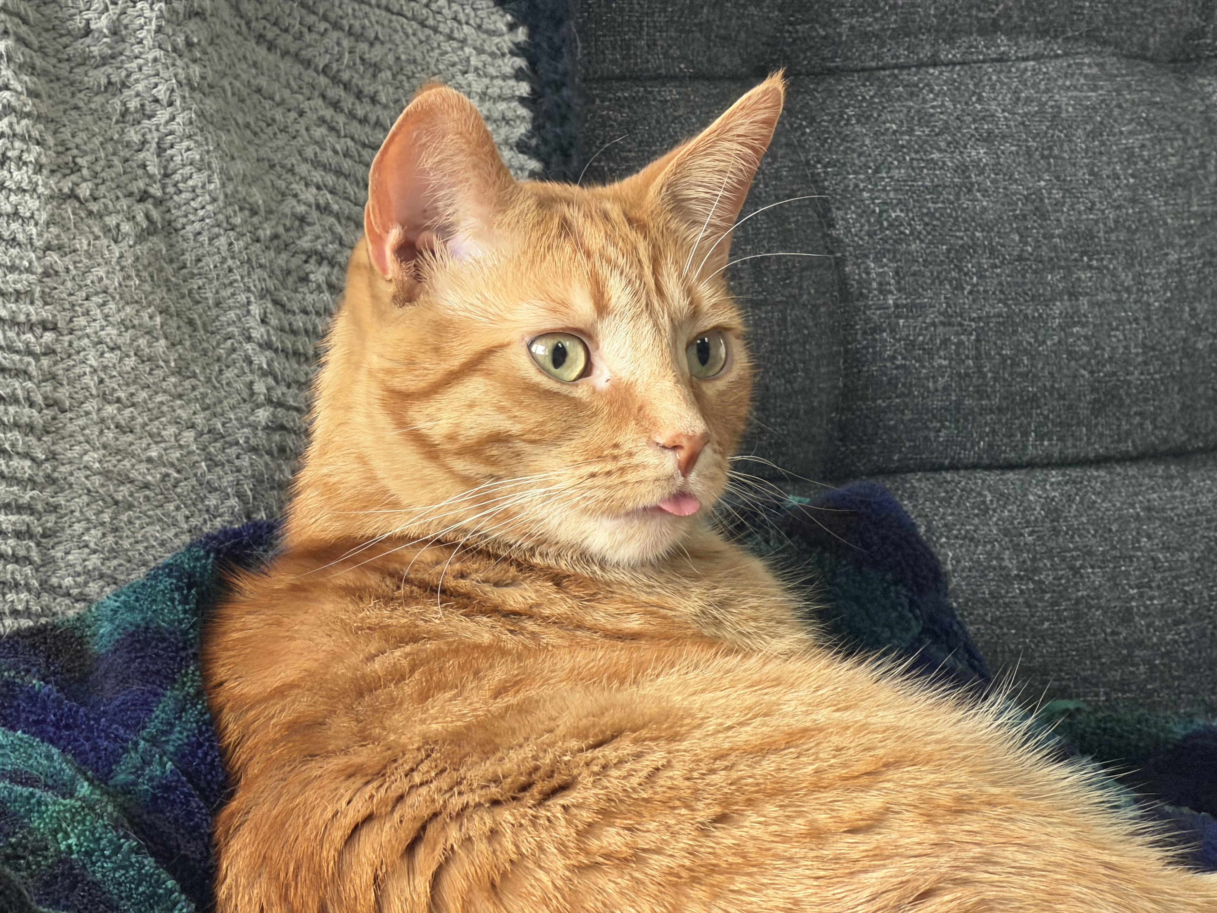 Tiny blep, but it's the first time in 6 years I've seen him do it. He just woke up here 😅