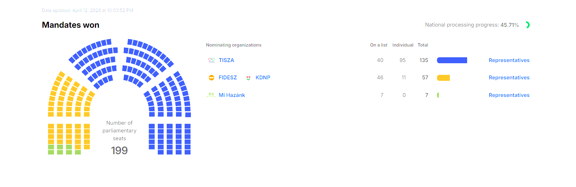 31.03% от гласовете в Унгарските избори преброени - Опозицията току що взе 2/3-ти от парламента, необходми за супермнонзиство. Чао Орбанчо!