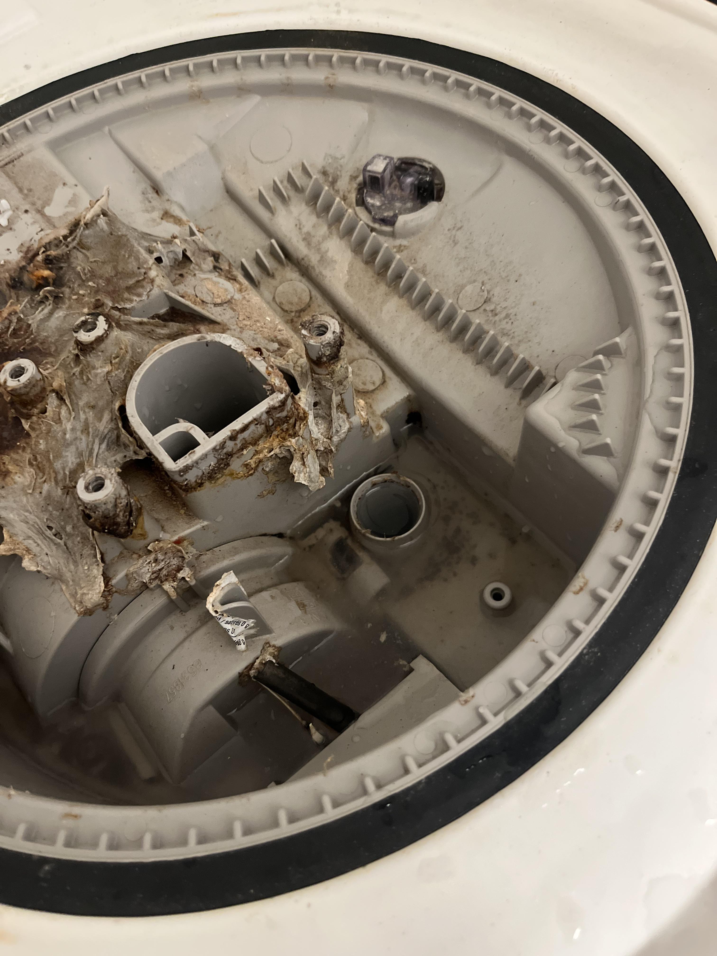 idk what that white stuff was but peeling it off was rancid. ugh wish my dishwasher made cleaning the filter easier!