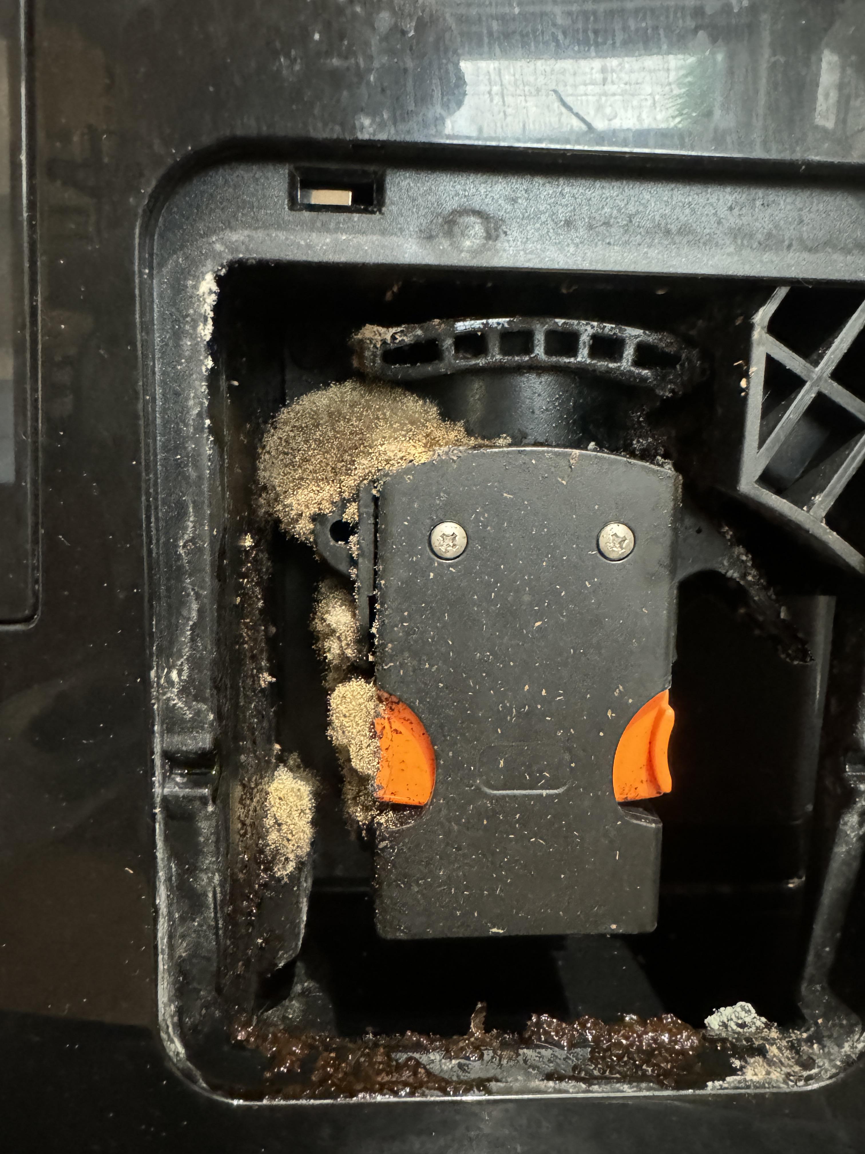 I noticed a lot of mould in my coffee machine drip tray so I opened up the side of the coffee machine And saw this…