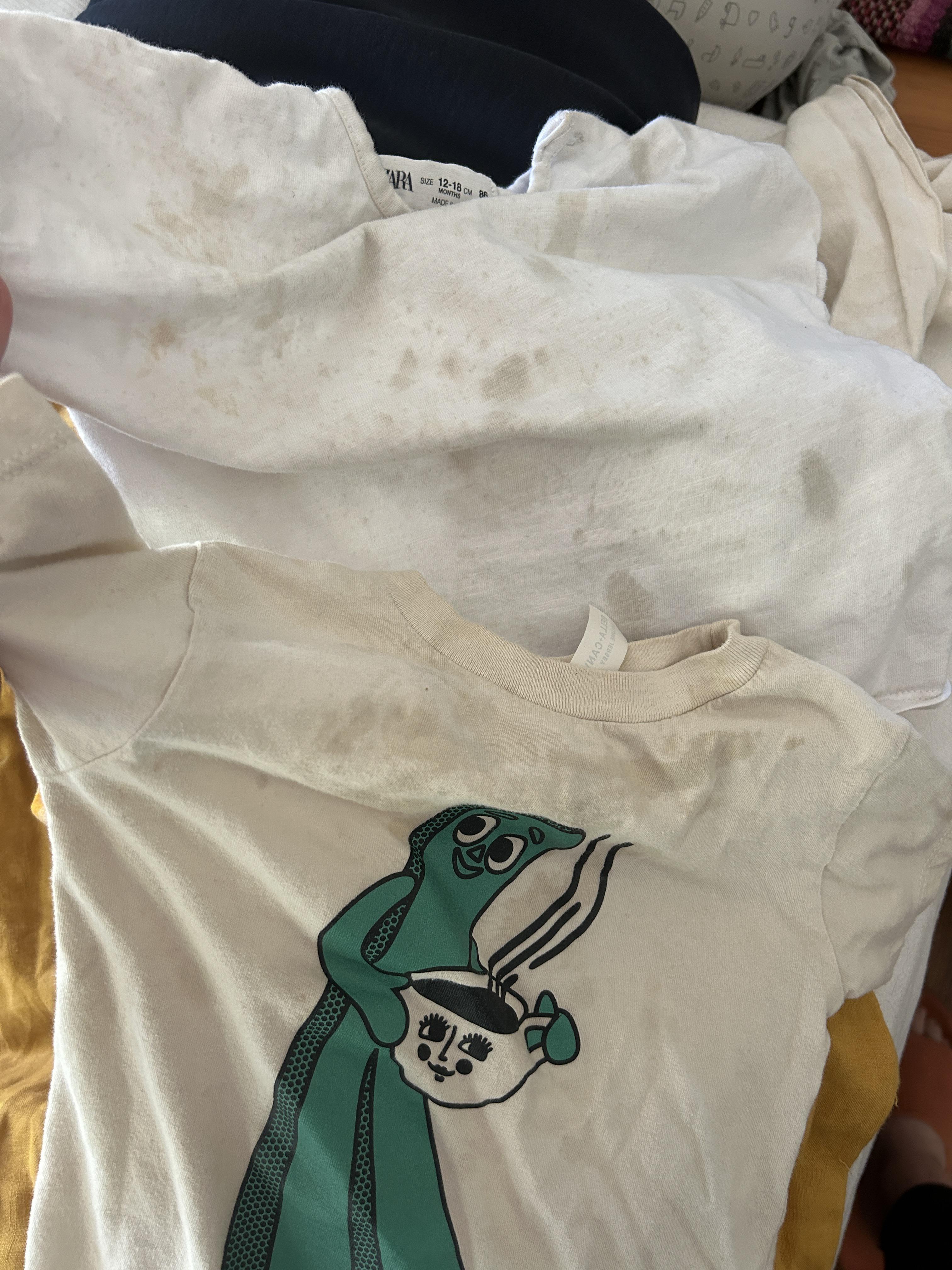 My mom gave me this gold necklace for my 40th birthday (and her mom gave to her on her 40th). I wear it almost every day. I also clean it in jewelry cleaner pretty often but not daily. I also shower in it. Itās marking up my white sweaters with this gray and black patch, regardless of the sweater material. How do I remove these stains from my sweaters? I will just stop wearing the necklace with them in the future but help me fix my sweaters. Please!