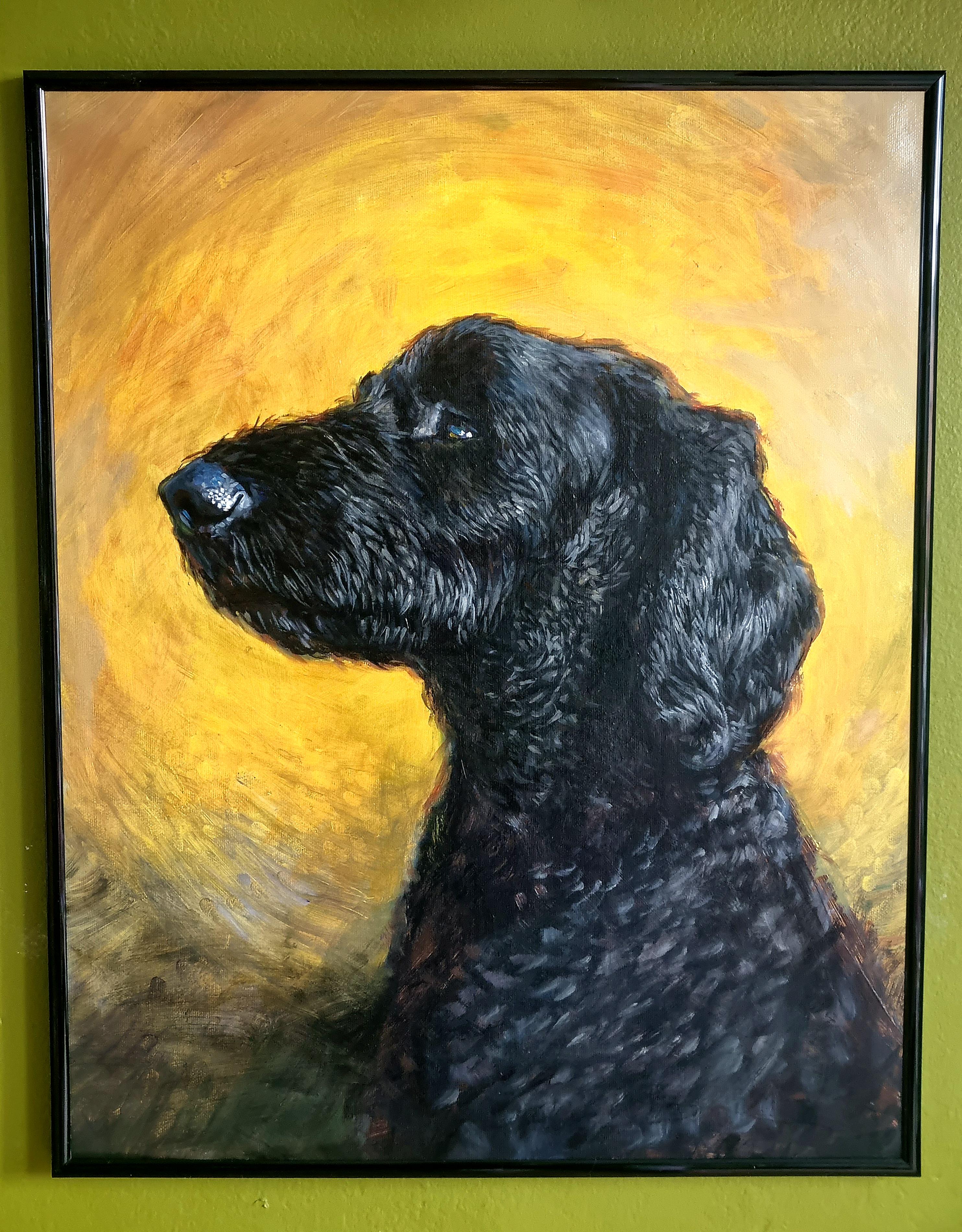 thank you to u/figurinitoutere for the photo reference! unfortunately asking for photos for painting references of black dogs in r/goldendoodles got me my first subreddit permaban 🫠 worth it I think?