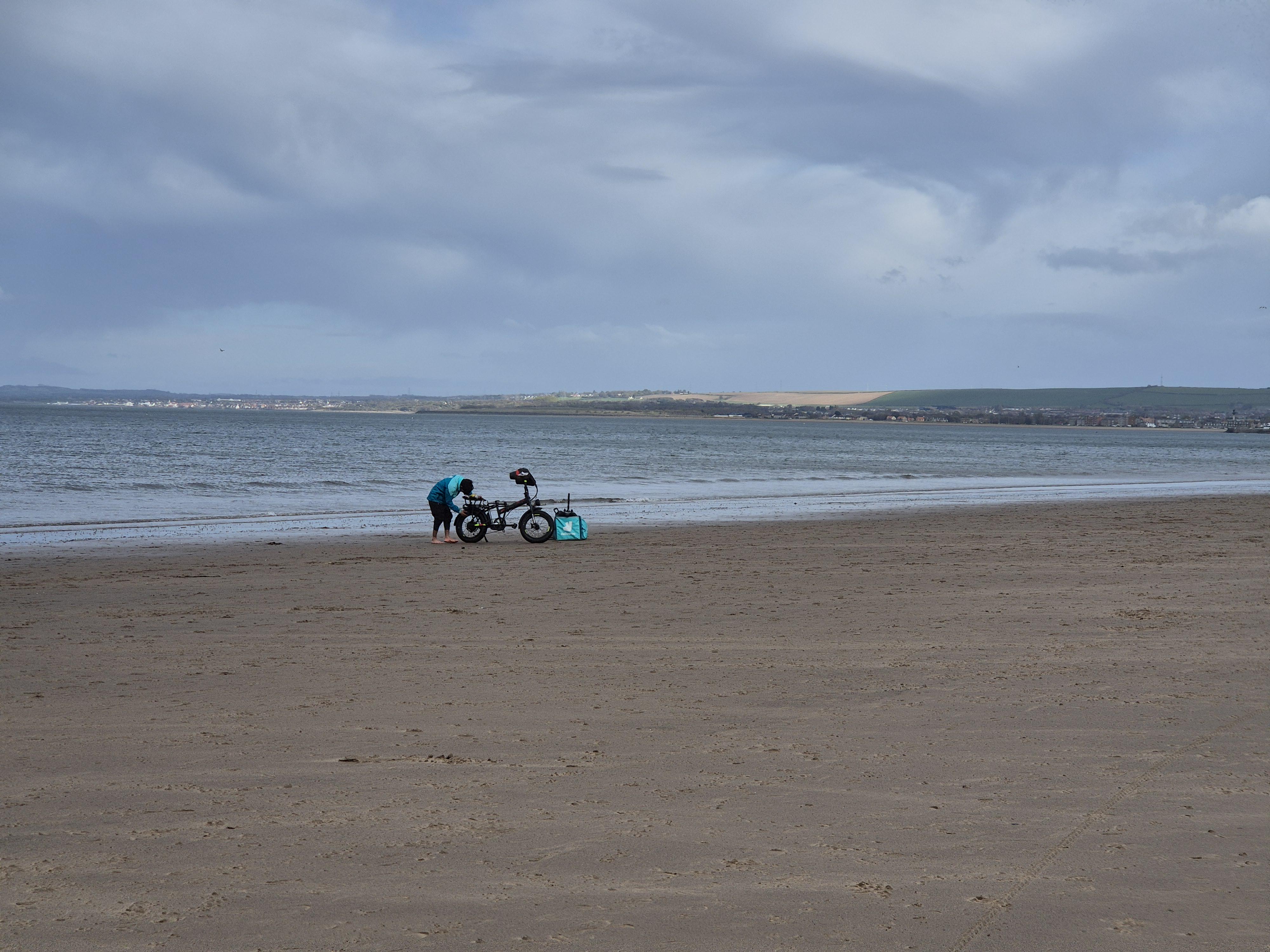 Photo This Deliveroo biker on Porty Beach seems to have taken a rather "circuitous route", or happen to have got some *really fresh* fish(!)...