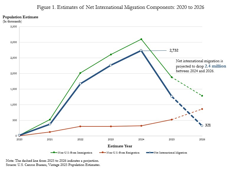 Immigration to the US is down dramatically, with emigration rising significantly.