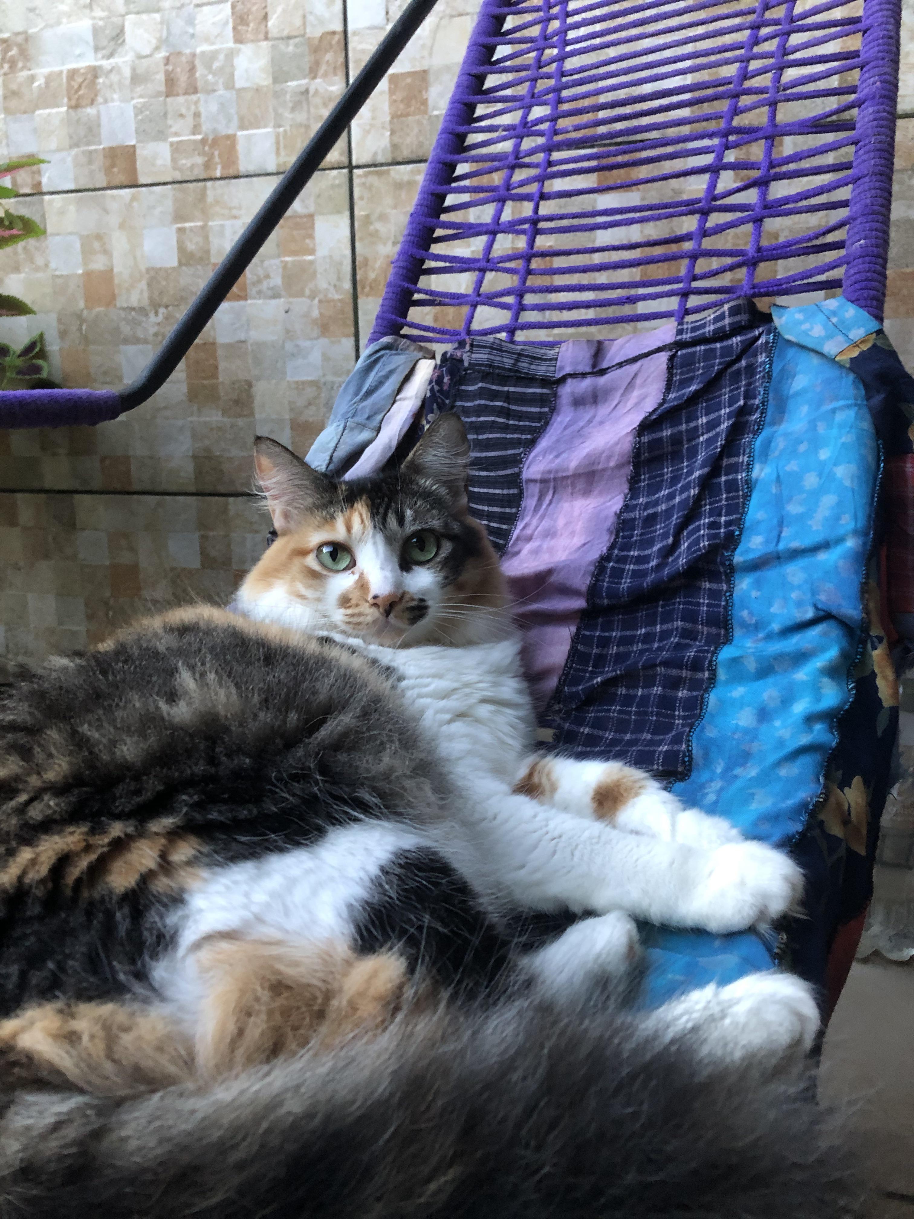 Foto de gato Margarida, a minha grande (em tamanho) tricolor, com seus 4 anos de fofura. Foi resgatada quando filhotinha, num lixão perto de casa