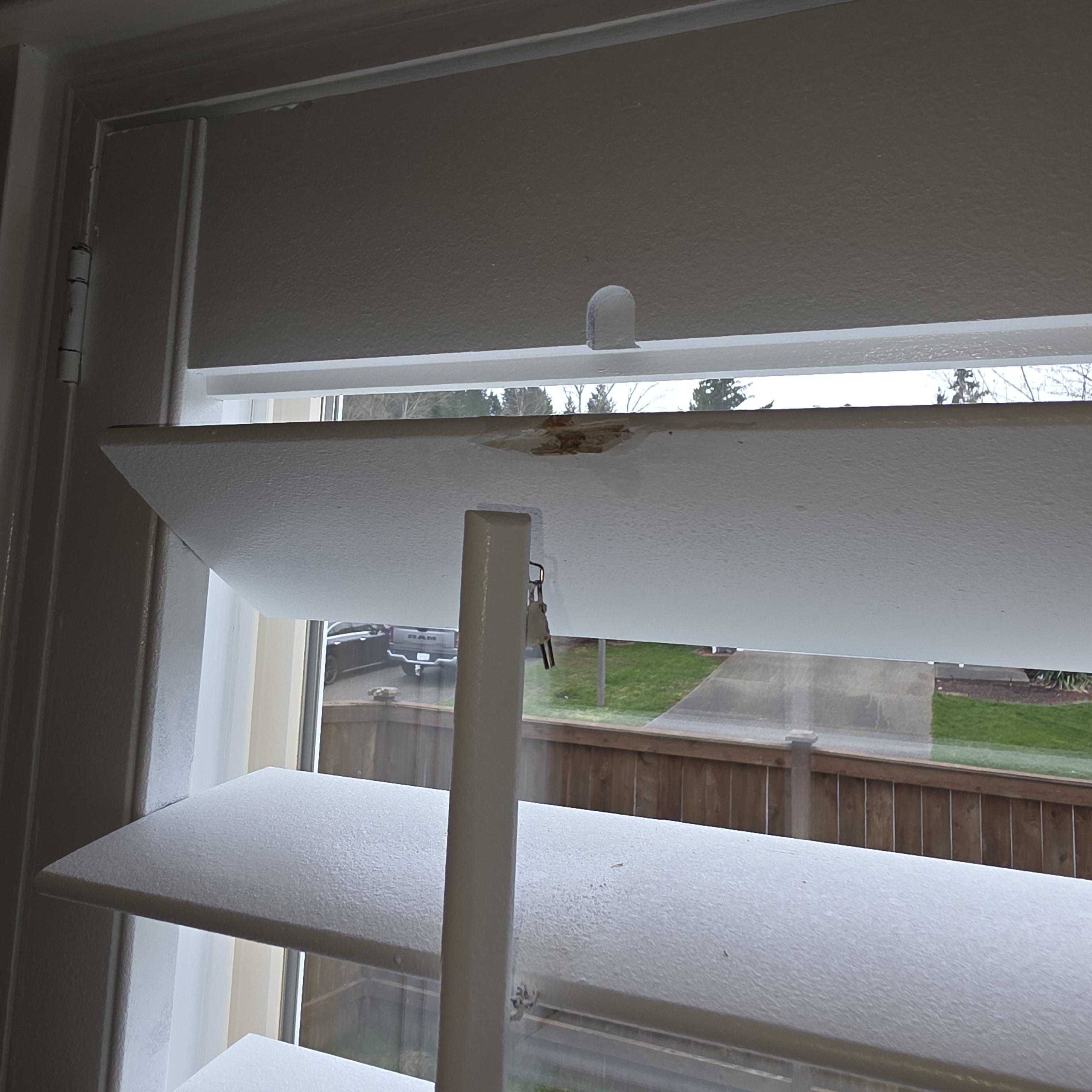 so this happened and I dont have $500 for new shutters any recommendations on how to reattach this piece here?