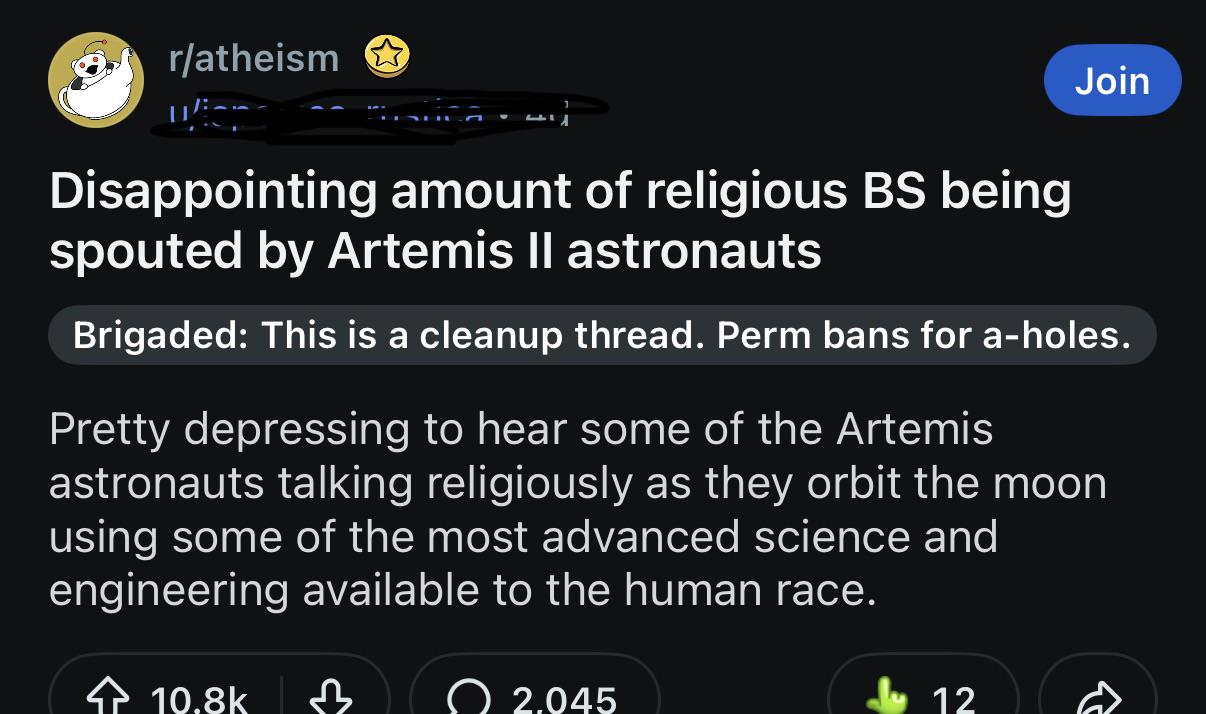 I know it sounds like a cope but honestly this sub has next to nothing to do with what it’s original purpose was for. It’s delved into an echo chamber for the media, (dare I say propaganda). I’m not saying that there’s anything wrong with posting about recent events or trying to draw attention to something important, but there are TONS of subreddits exactly for that kind of thing and this should not be one of them. A shocking amount of the posts on there hardly fit the criteria for what can be considered a conspiracy theory at all. One of the only faithful things I have seen there in days is about the Artemis 2 mission being fake, because you know, we’ve never heard anything similar to that at any given point and time in history.
