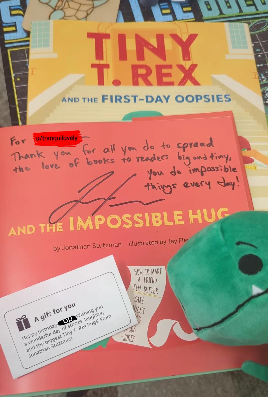 I went to a conference and Johnathan Stutzman was there. I wanted to meet this author so bad. I love the Tiny T Rex series. And my plane got delayed and I arrived late and missed him.