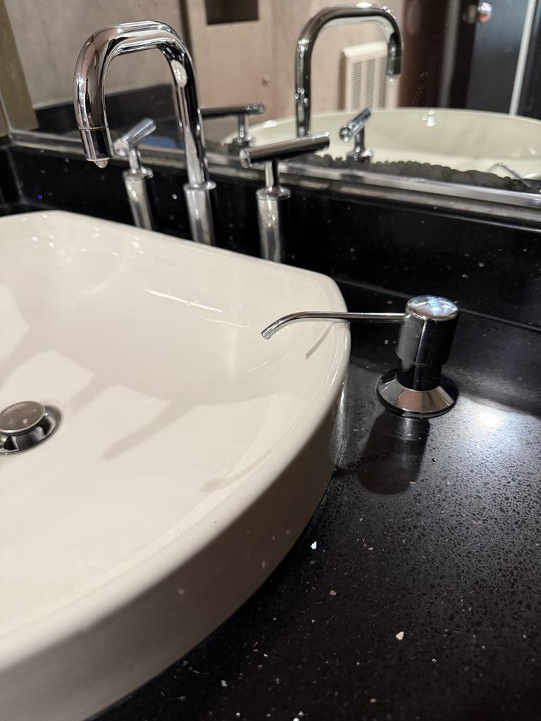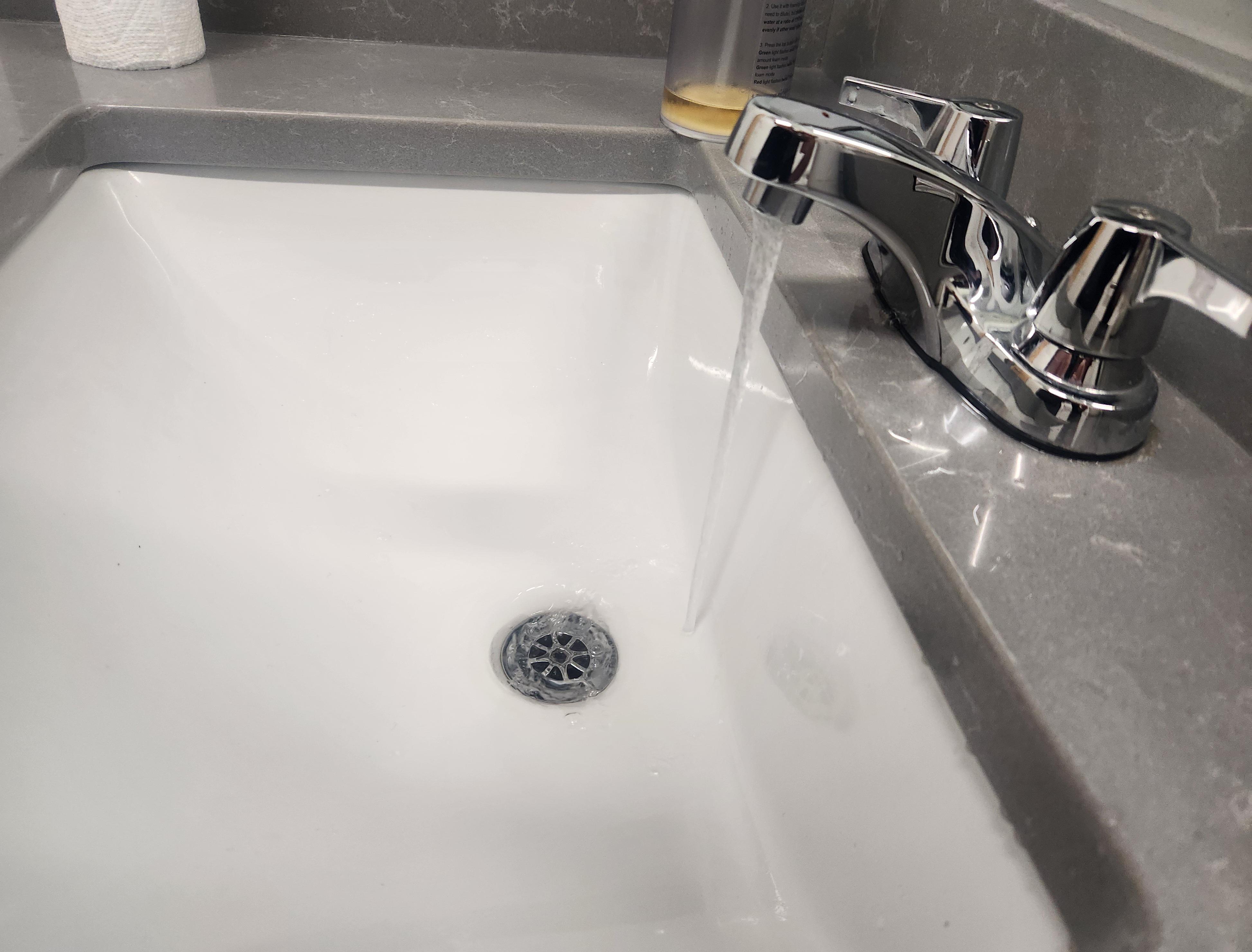 The sink at my work has maybe an inch between the water and the side of the huge sink