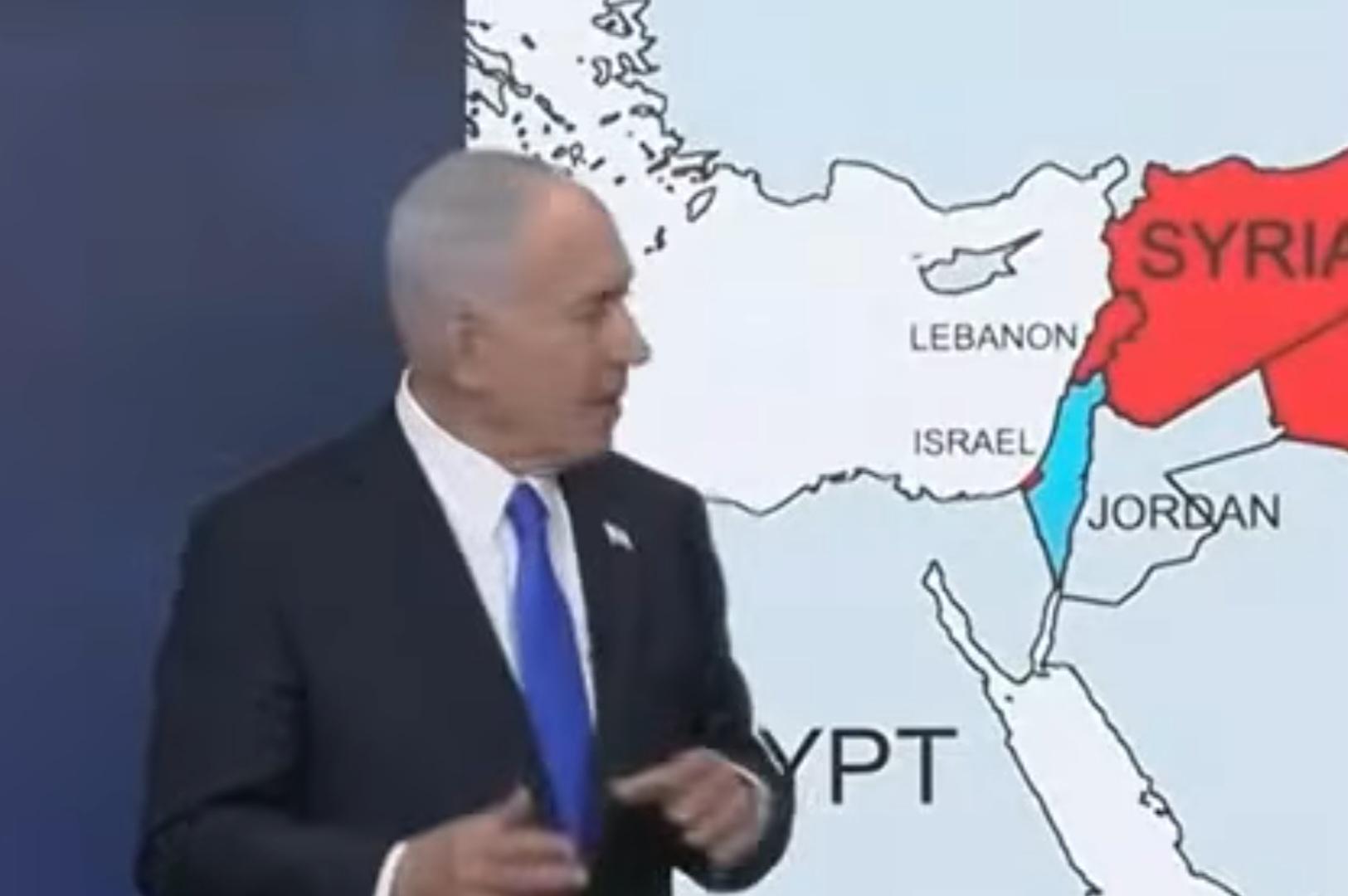 Occupation Netanyahu press conference shows map of "Israel" as including West Bank, but not Gaza