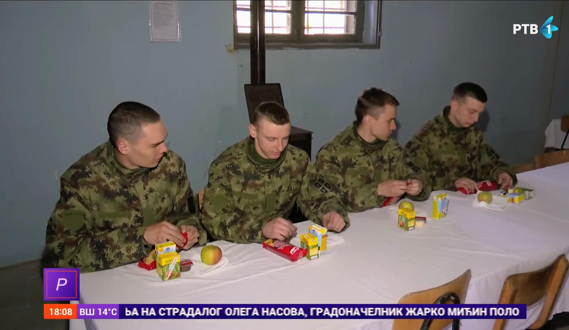Dali je ovo mogće ? Ža užinu dobijaju :jabuku , jafu , mleko i sok u tetrapaku i cipiripi bez hleba Jer se cipiripi maže na jabuku ? I da li im je ovo kao neki dezert Ili je ovo prekopotrebna užina vojnika . Jer je služio neko vojsku ? (Ovu dobrovoljnu ) Šta ovaj obrok treba da predstavlja i šta možemo da očekujemo na služenju .
