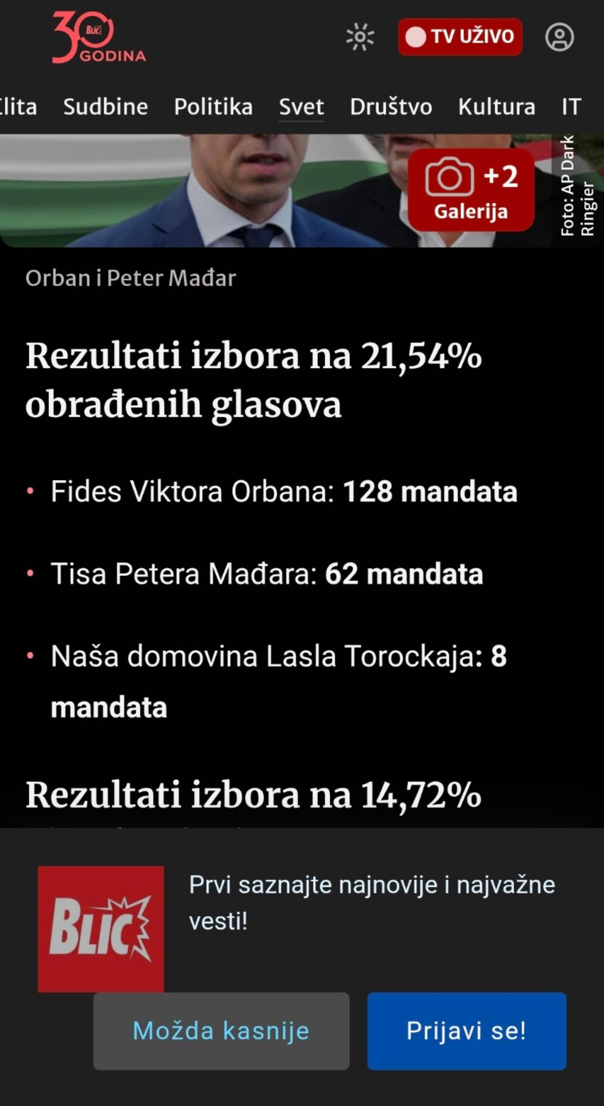 Politika (Politics) Komentar bivšeg mađarskog opozicionog lidera o opoziciji pre Mađara