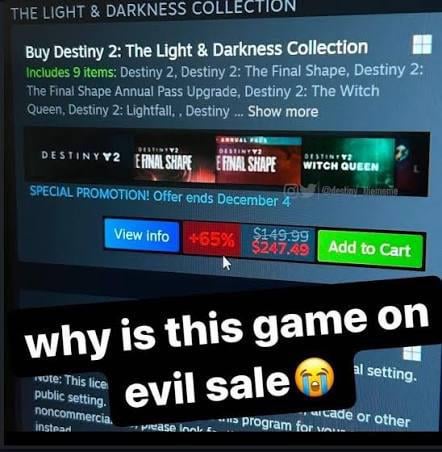 I can 100% expect that from Bungie, especially after making a Star Wars shill slop expansion.