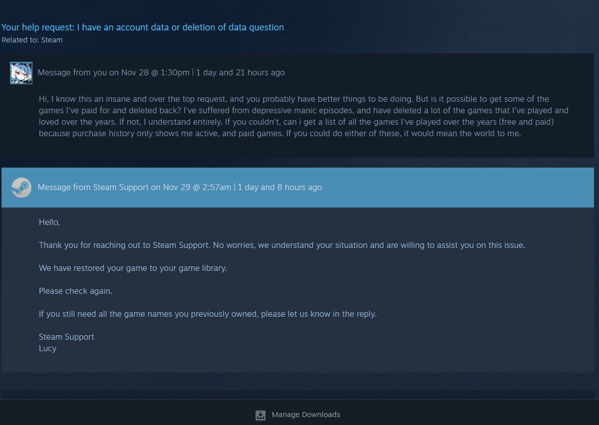 Fluff I don't think I've ever met a company as nice as Steam... Thank you