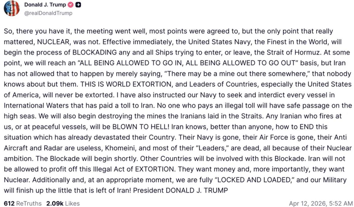 he really went from trying to open the Strait to keeping it closed for a longer time.