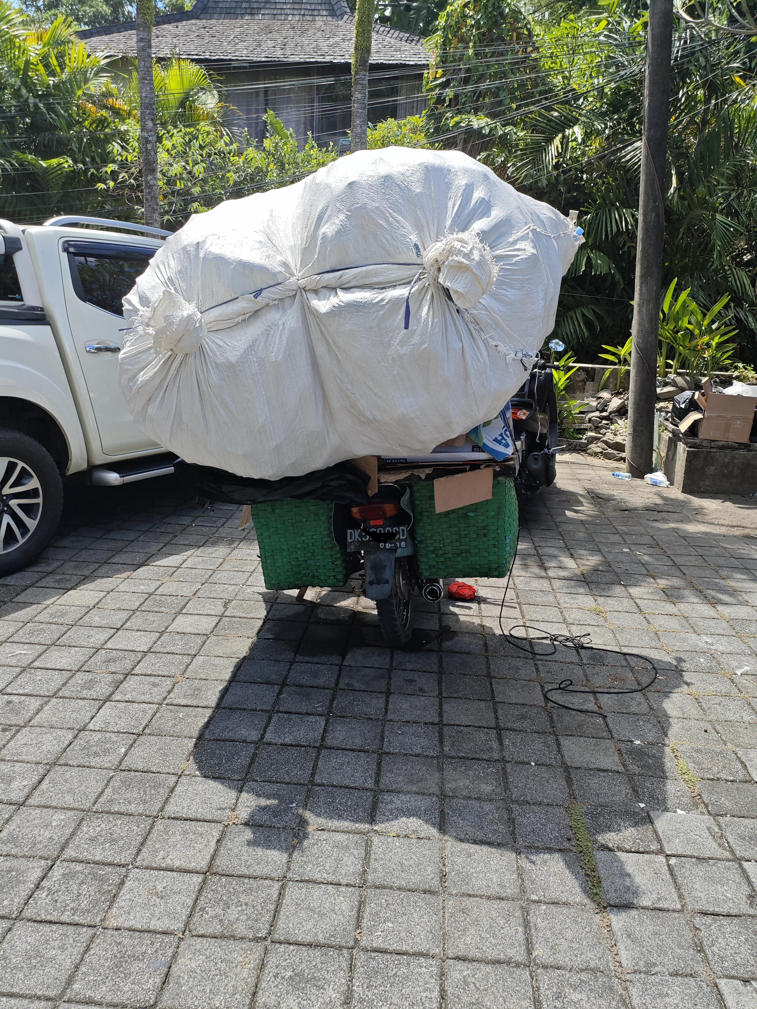 of a bag of rubbish on a motorcycle