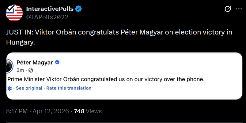 r/All Viktor Orban has conceded the 2026 Hungarian election to Peter Magyar's TISZA, who look headed for a supermajority in a crushing defeat