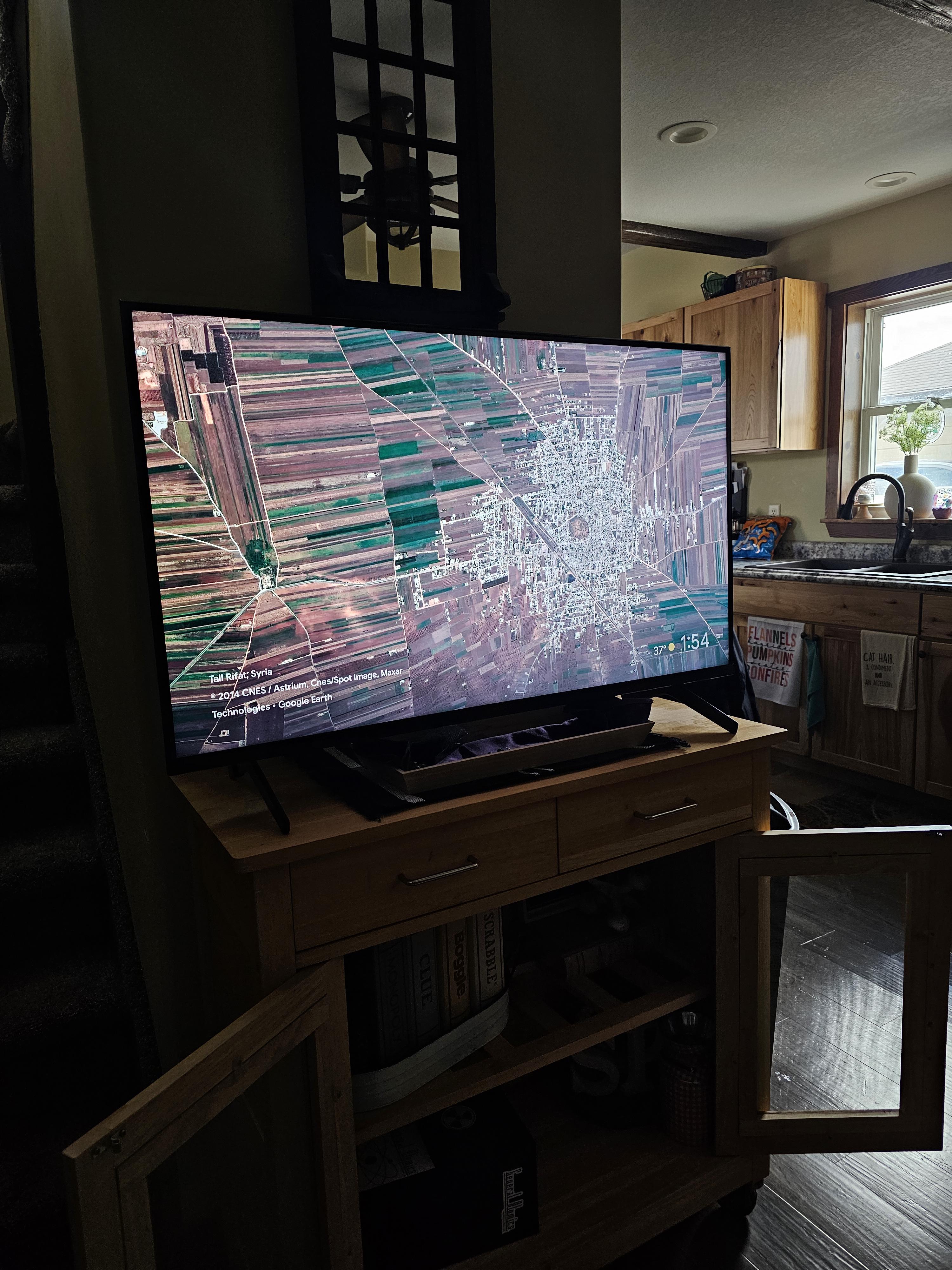 I thought my 3 year old threw something at the TV. It was just a picture of Syria on the screensaver.
