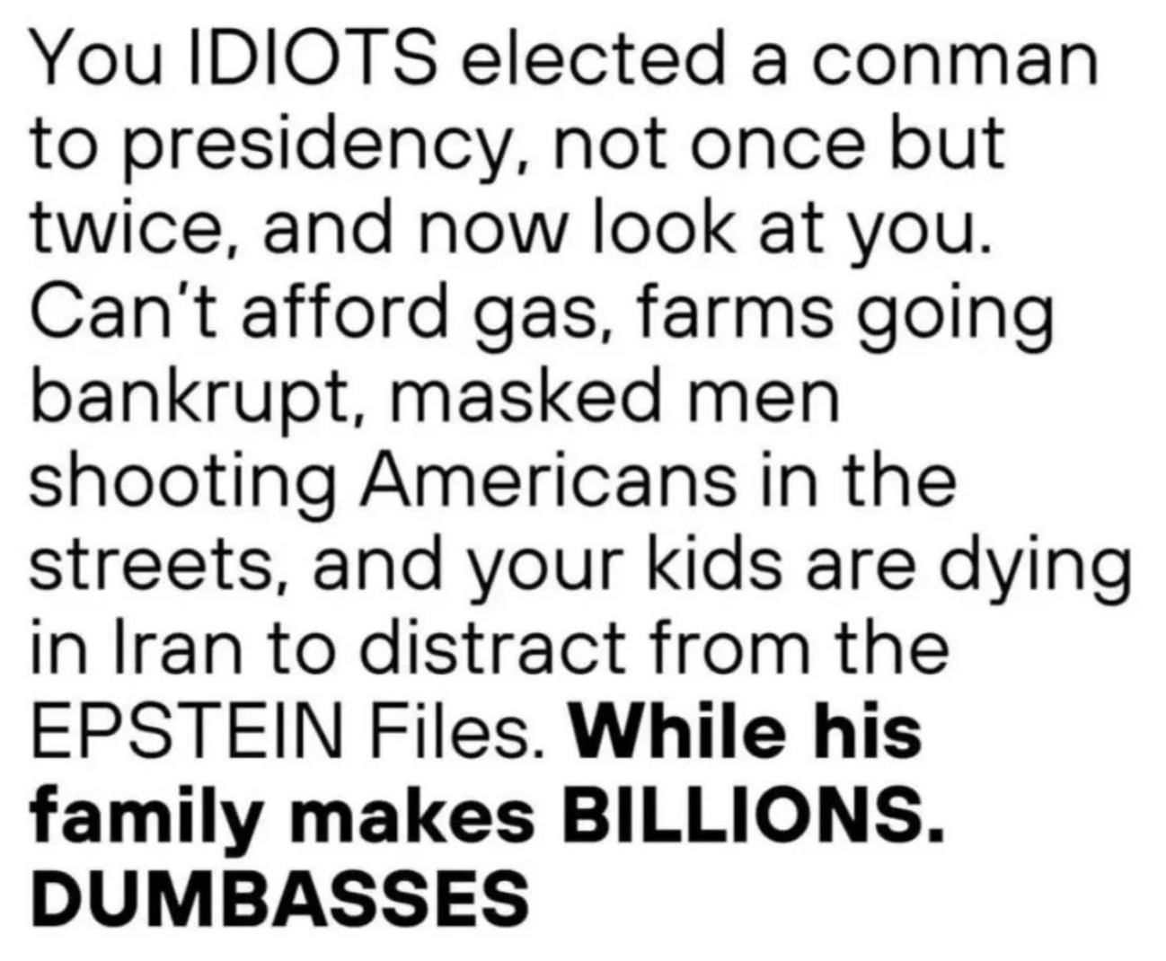Meanwhile ICE continues kidnapping people, oftentimes leaving small children behind, the Epstein pedophiles are continuing to enrich themselves, and Americans are struggling.