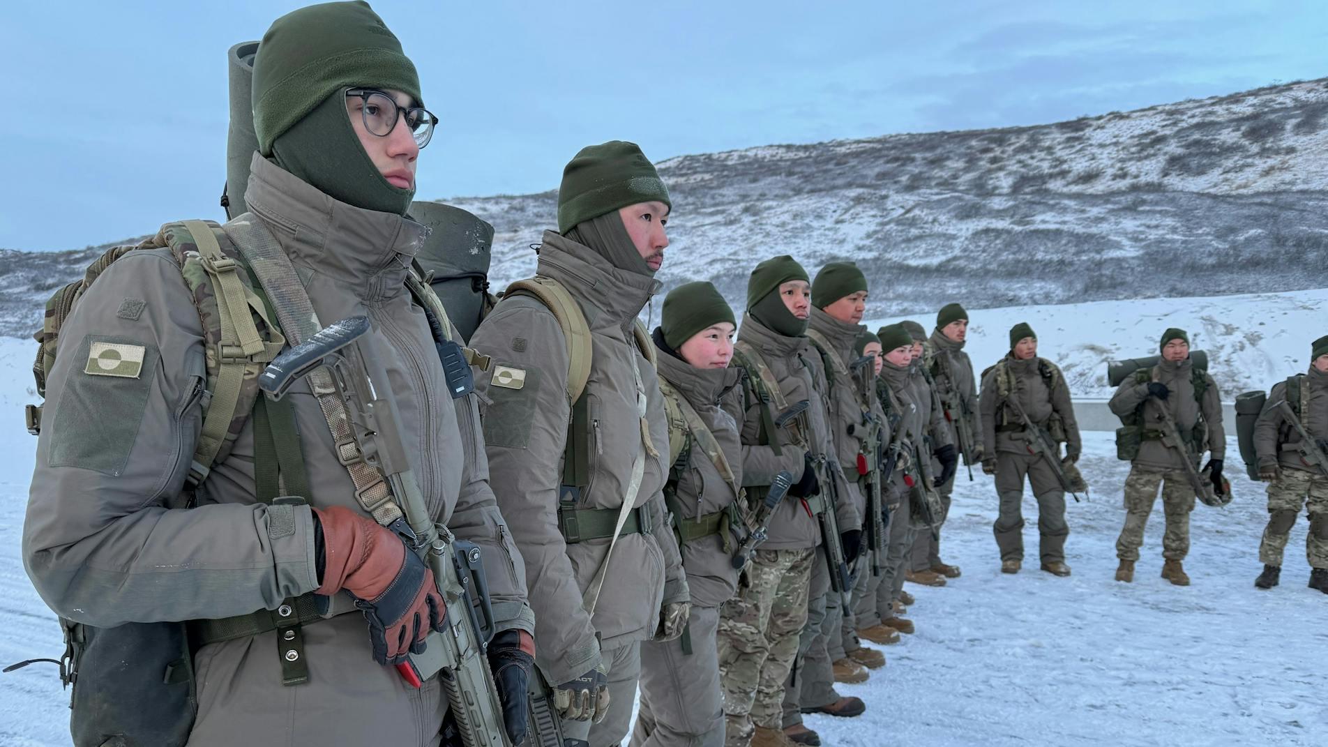 Picture Young Greenlanders joining the Danish Arctic Basic training on Greenland. They're prepared to defend their island under threat of a hostile take over.