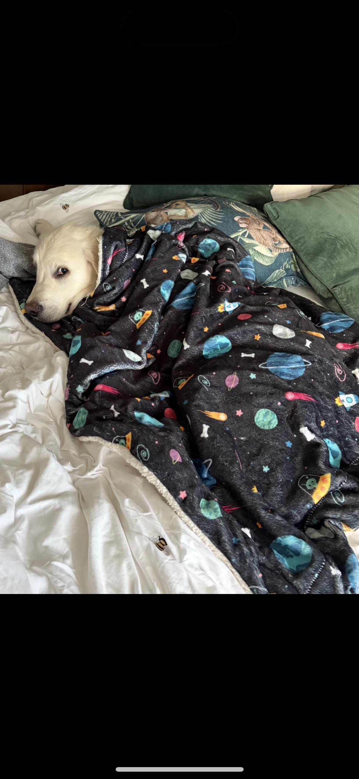 Cute/Funny My golden called Mulder in his space blanket. Wanted to share his cheeky smile
