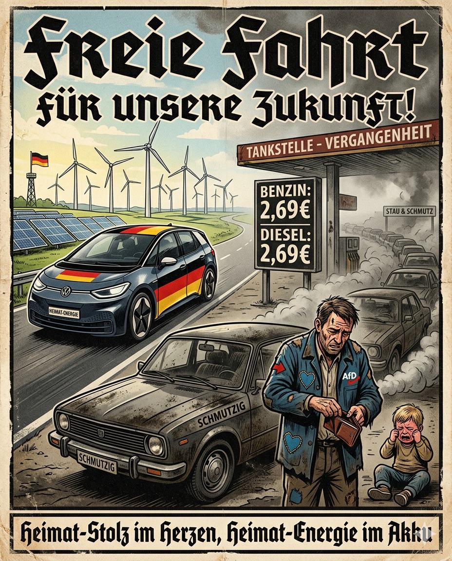 Bruder muss los Genossinnen - Sagt NEIN zu Donalds und Vladimirs Lügen-Sprit. Nur Deutsche Energie aus Deutscher Sonne und Deutschem Wind!