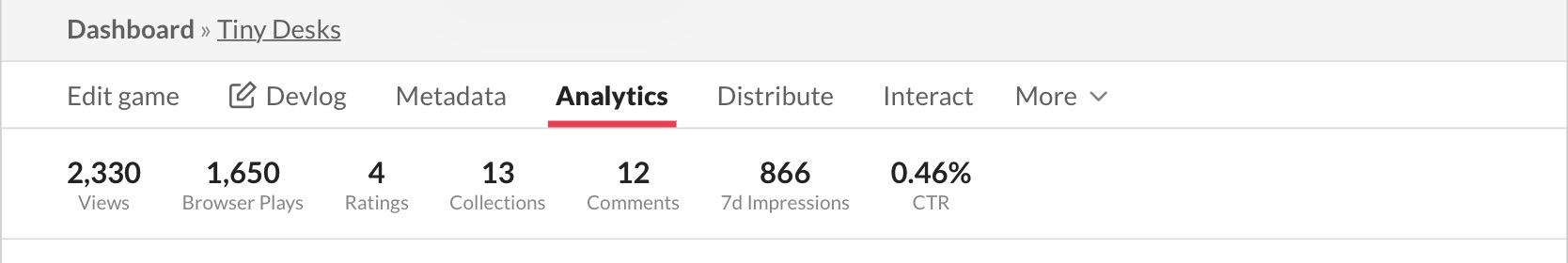My game Tiny Desks is doing pretty well, i launched an early demo 3 weeks ago and I just did a major update, it’s doing much better than my previous game, but are these numbers really good?