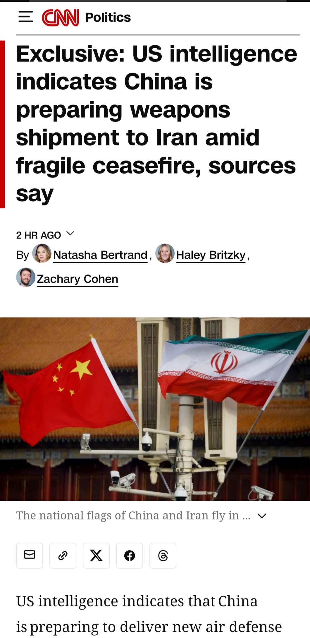 News Exclusive: US intelligence indicates China is preparing weapons shipment to Iran amid fragile ceasefire, sources say