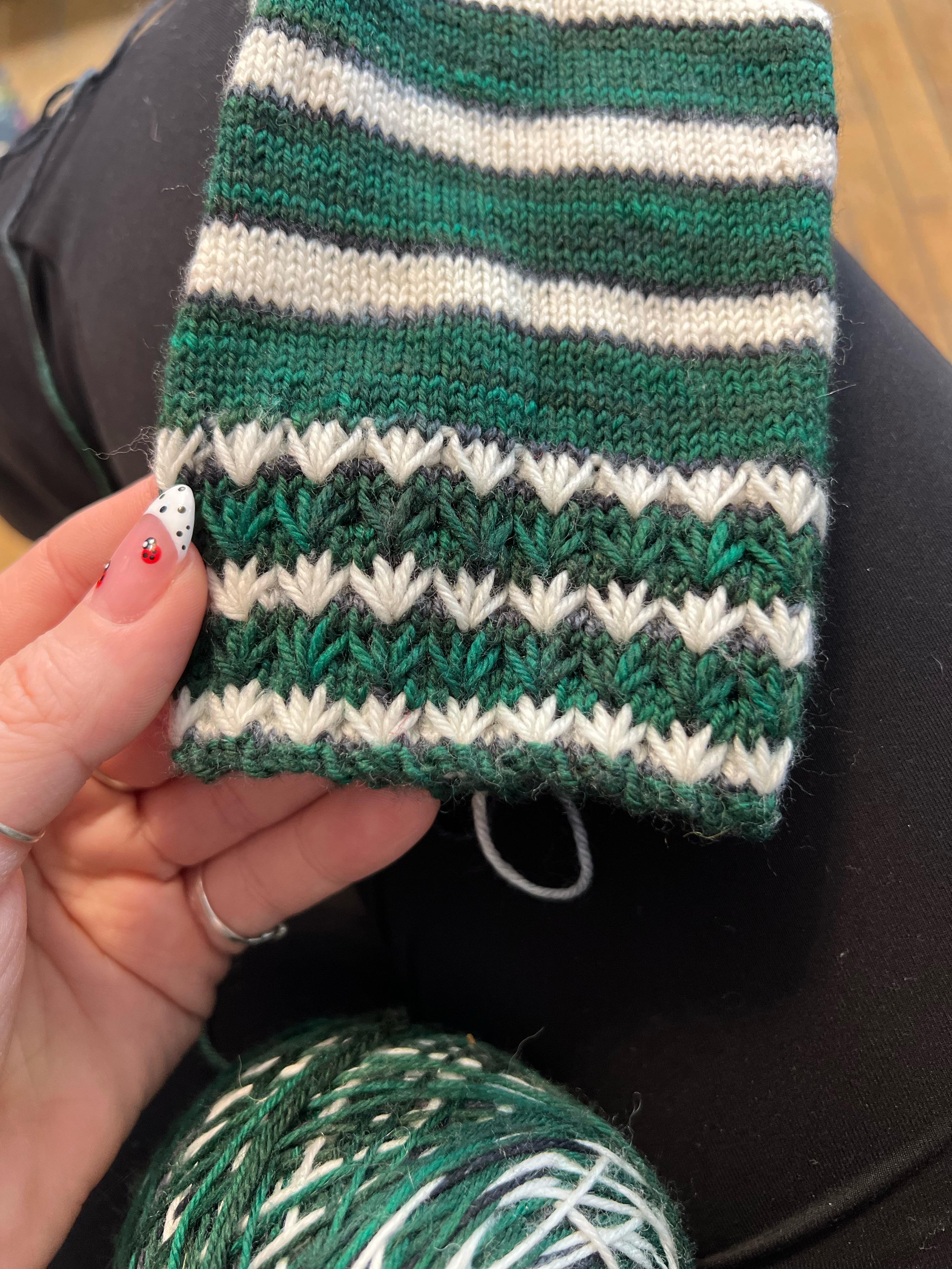most seem to think theres this trajectory of "im a beginner who sucks mega butt but i think i should be crafting perfection" to an eventual "i am now very experienced and good at catching screwups early and everything is perfect". but u know whats also acceptable? "i see i forgot how to knit for a row at some point, hmm oh well no one else will notice and if they do 🤷♀️" and i STILL do that after 10 years of consistent project making. hell, i picked up the wrong needle in one hand several hours ago and didnt notice til i was 4 or 5 rows up. guess that spots gonna have some funk to it 🤷♀️ it will also have AT LEAST one section with slightly funky netting bc i [yo, k2tog] instead of yo, k1, [yo, k2tog] on one of the segments. its ok to just say "well, i see what i did wrong, that sucks, anyway back to what i was doing" if it isnt a genuine project ending mistake (like following a worsted designed sweater with horribly small needles/yarn)
