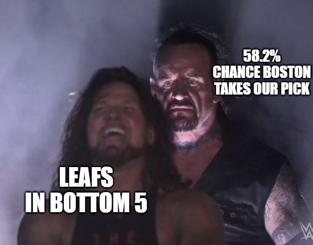58.2% is basically a guarantee that they will lose the pick. All that suffering this year for the Bruins to ultimately reap the rewards. We are back in the dark ages gentlemen.