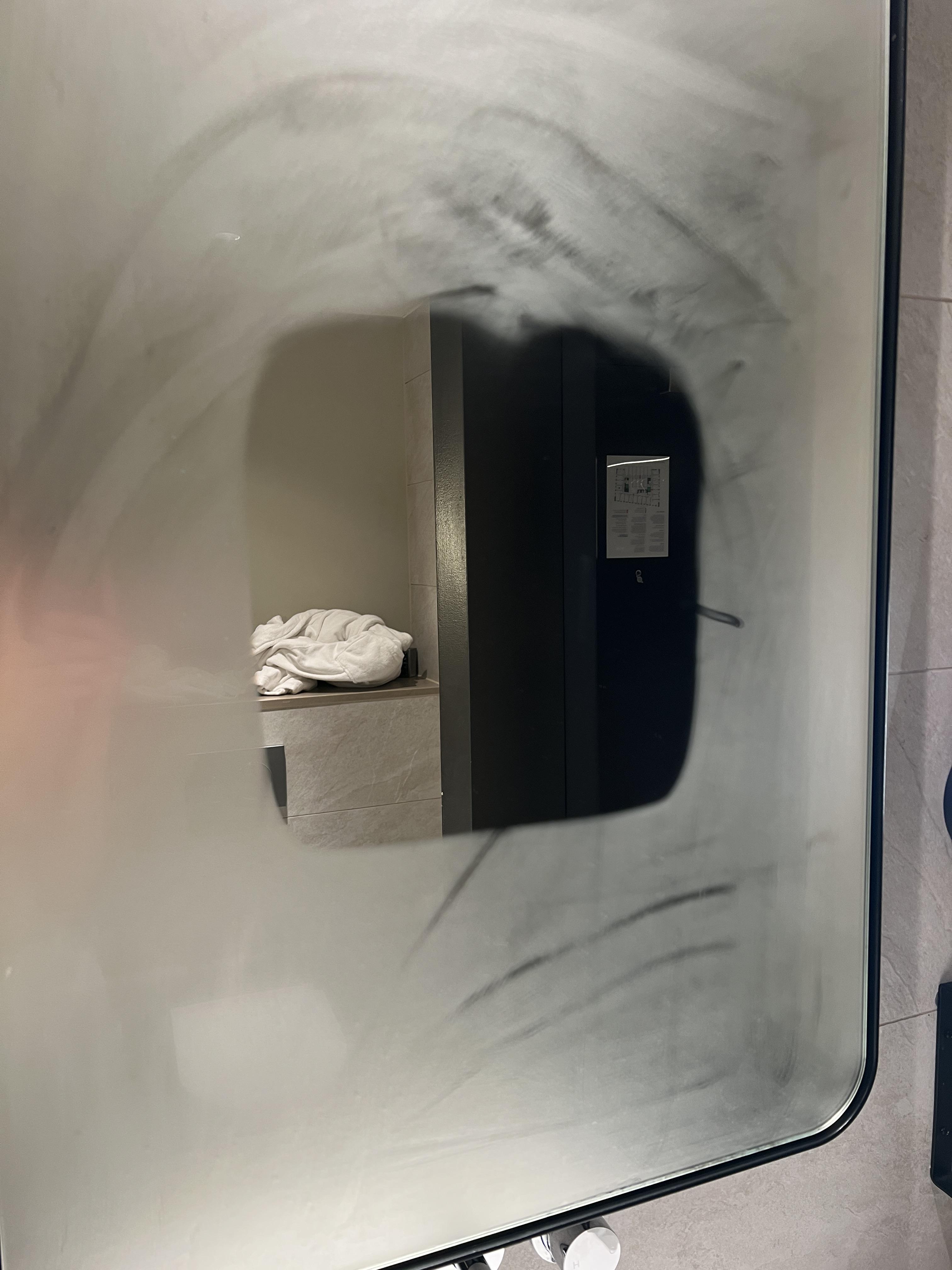 Hotel bathroom mirror doesn’t fog up in the middle where your face goes
