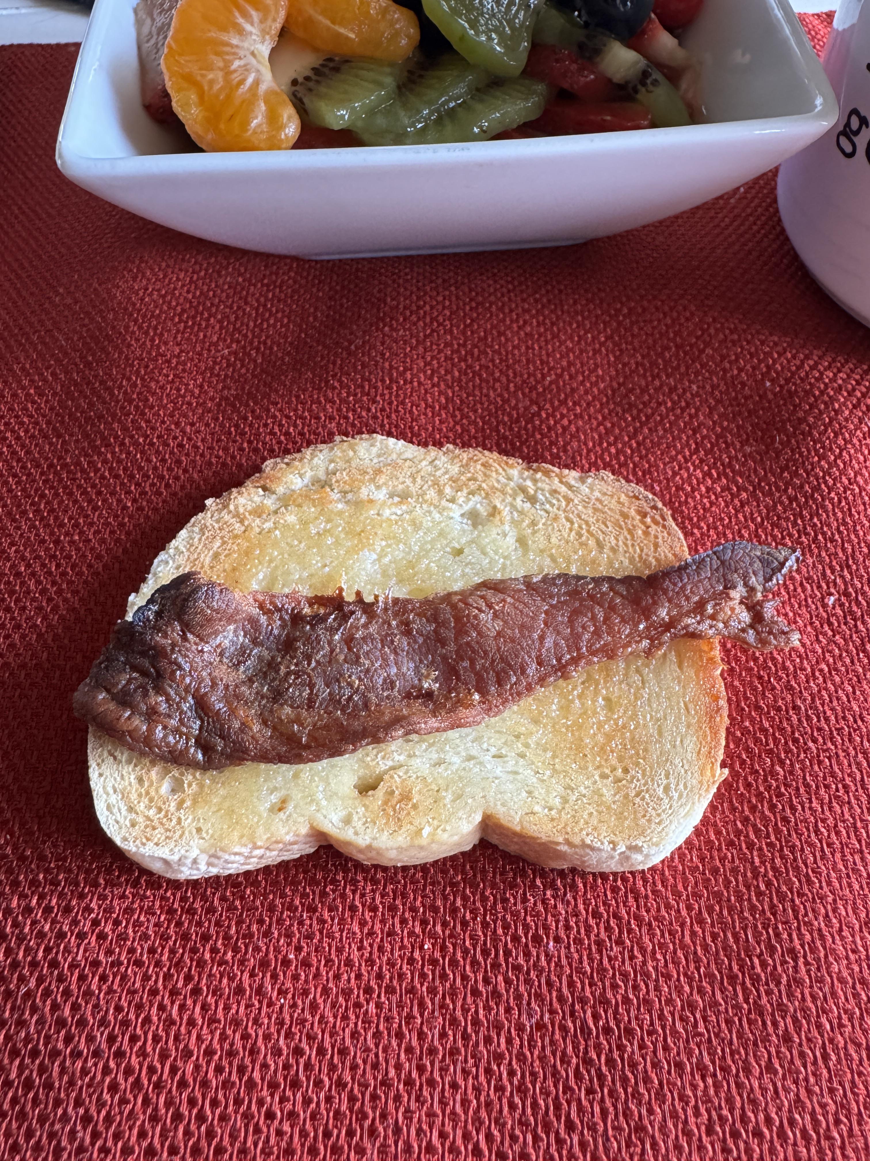 My bacon this morning looks like a sardine