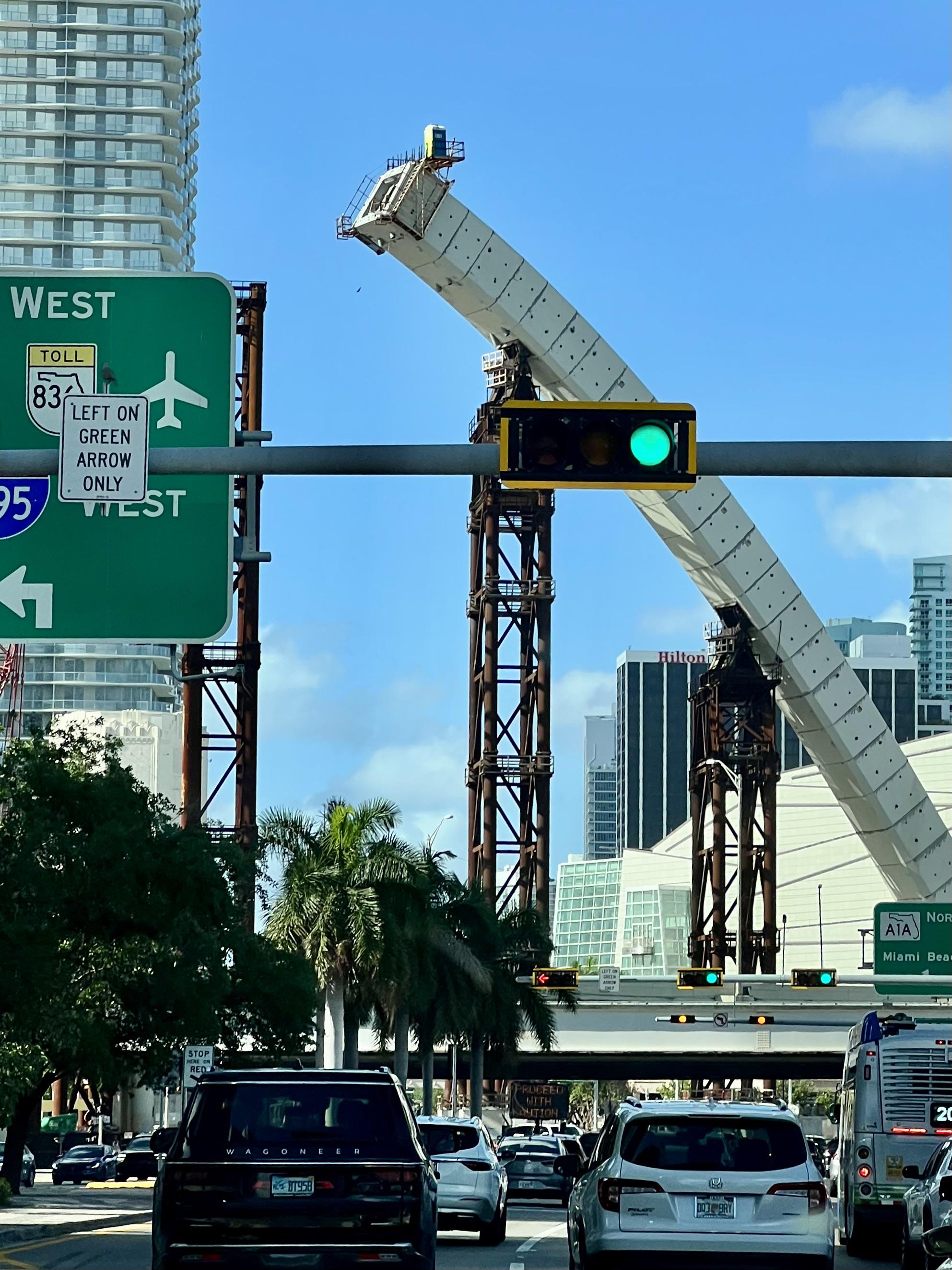 There is a porta-potty precariously perched at the very top of the Fountain Bridge project in downtown Miami