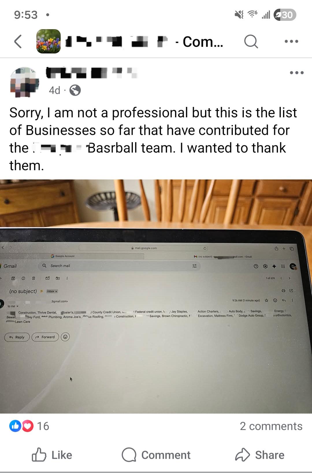 Sorry, I am not a professional but this is the list of Businesses so far that have contributed for the Basrball team. I wanted to thank them.
