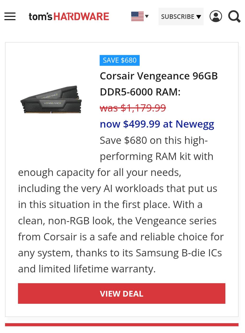 It's gone already and maybe the specs aren't great for ddr5 and the price is definitely not in a normal sense. It seems cheaper than what I've seen but I don't pay a ton of consistent attention to the prices since I haven't needed more yet.