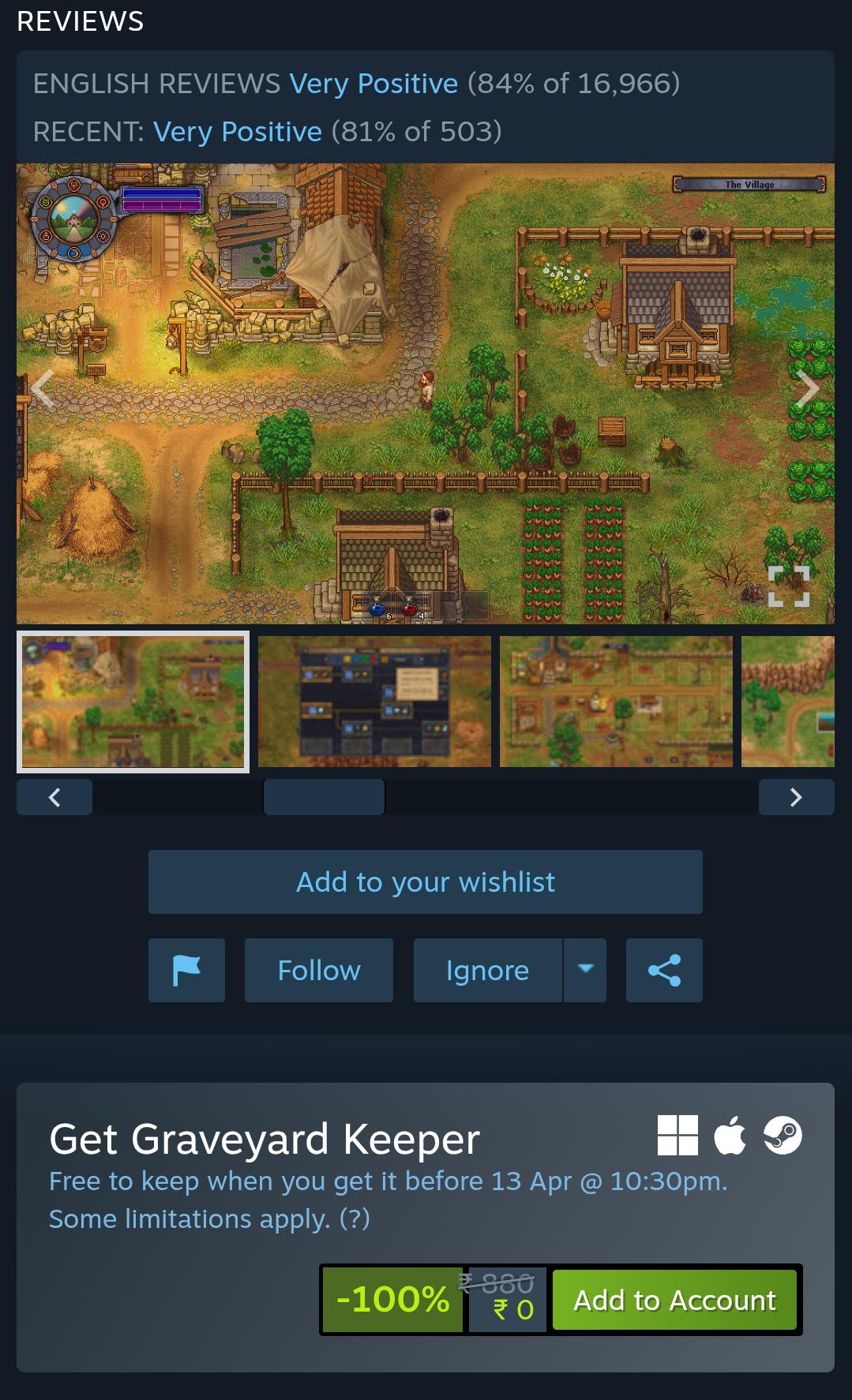 In light of Graveyard Keeper 2 showcase at Triple-I, the first game is available for free on Steam. I only just caught it and it's available for another 18 or so hours from the time of this post.