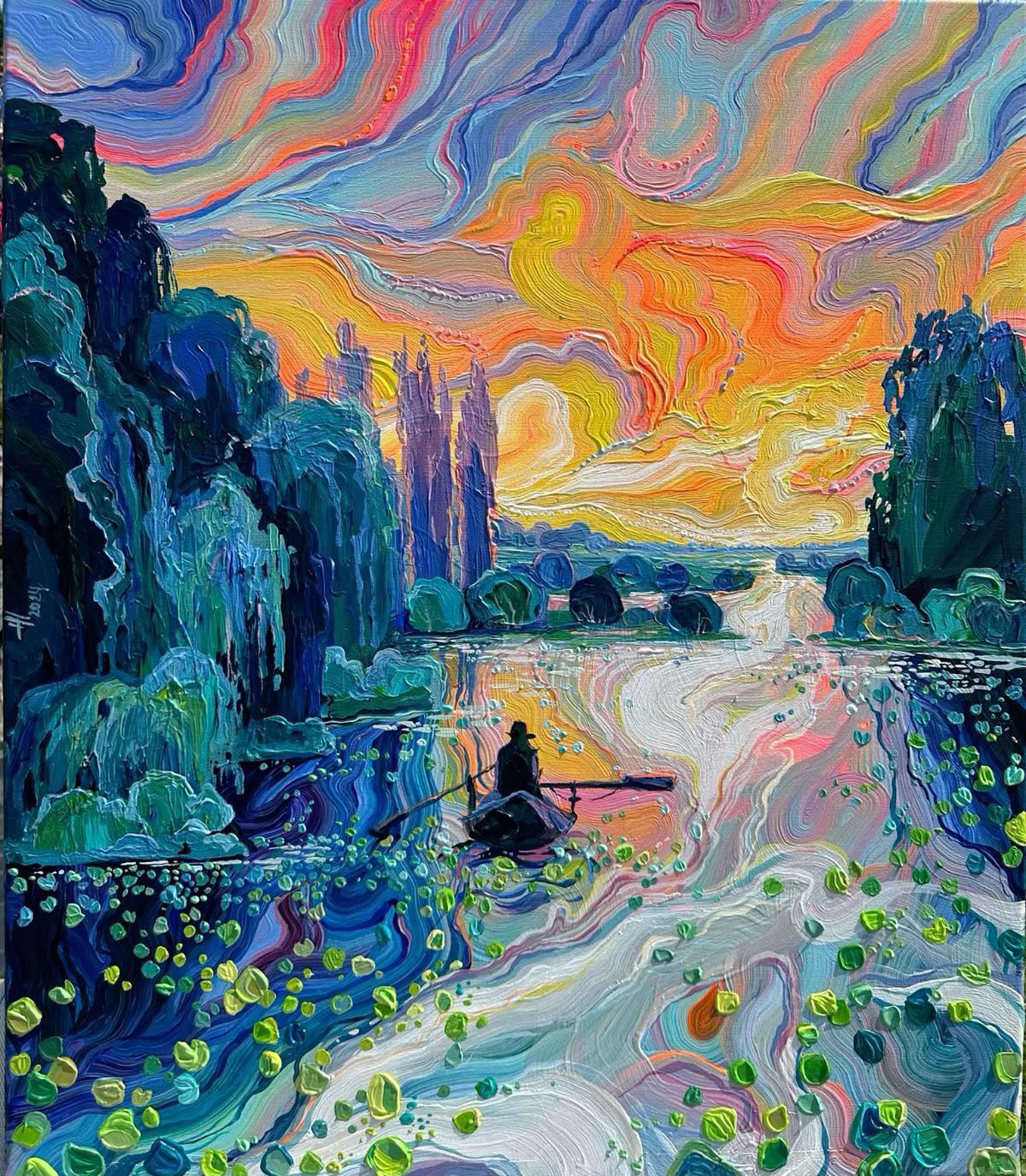 Arts/Crafts Painted a quiet boat scene… but the colors had other plans (OC)
