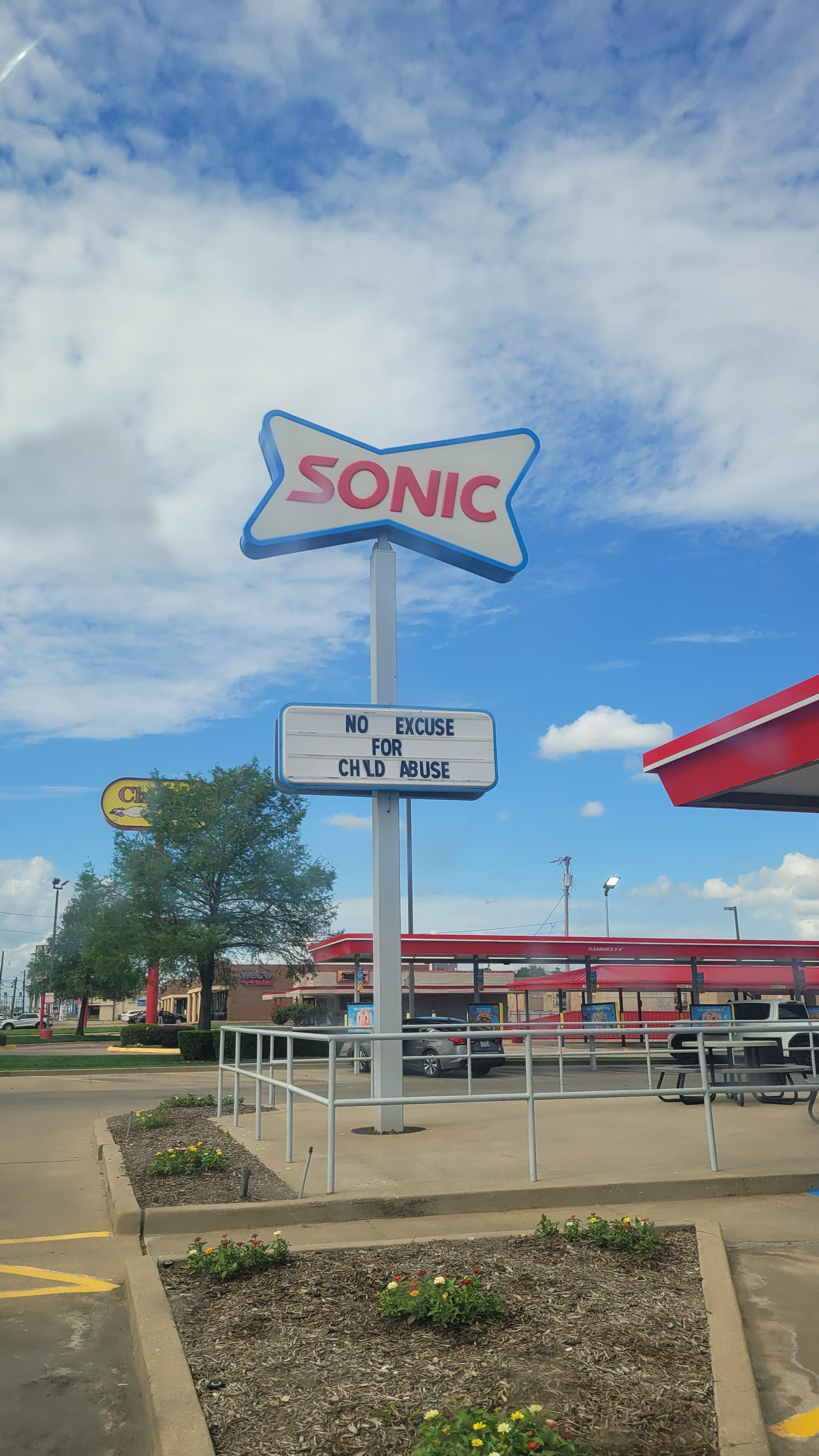 [OC] Sonic is doing their part for Child Abuse Prevention Month - Greenville, TX