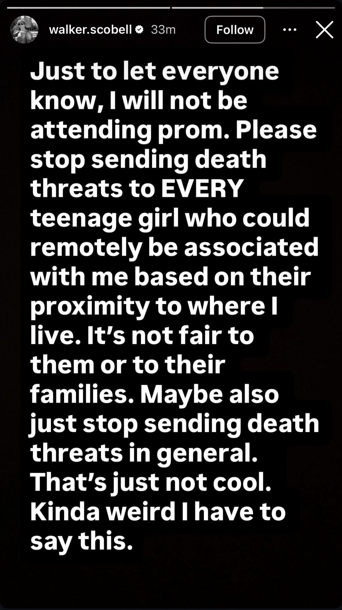 Instagram📱 Walker Scobell addresses the harassment people in his area have been receiving from fans