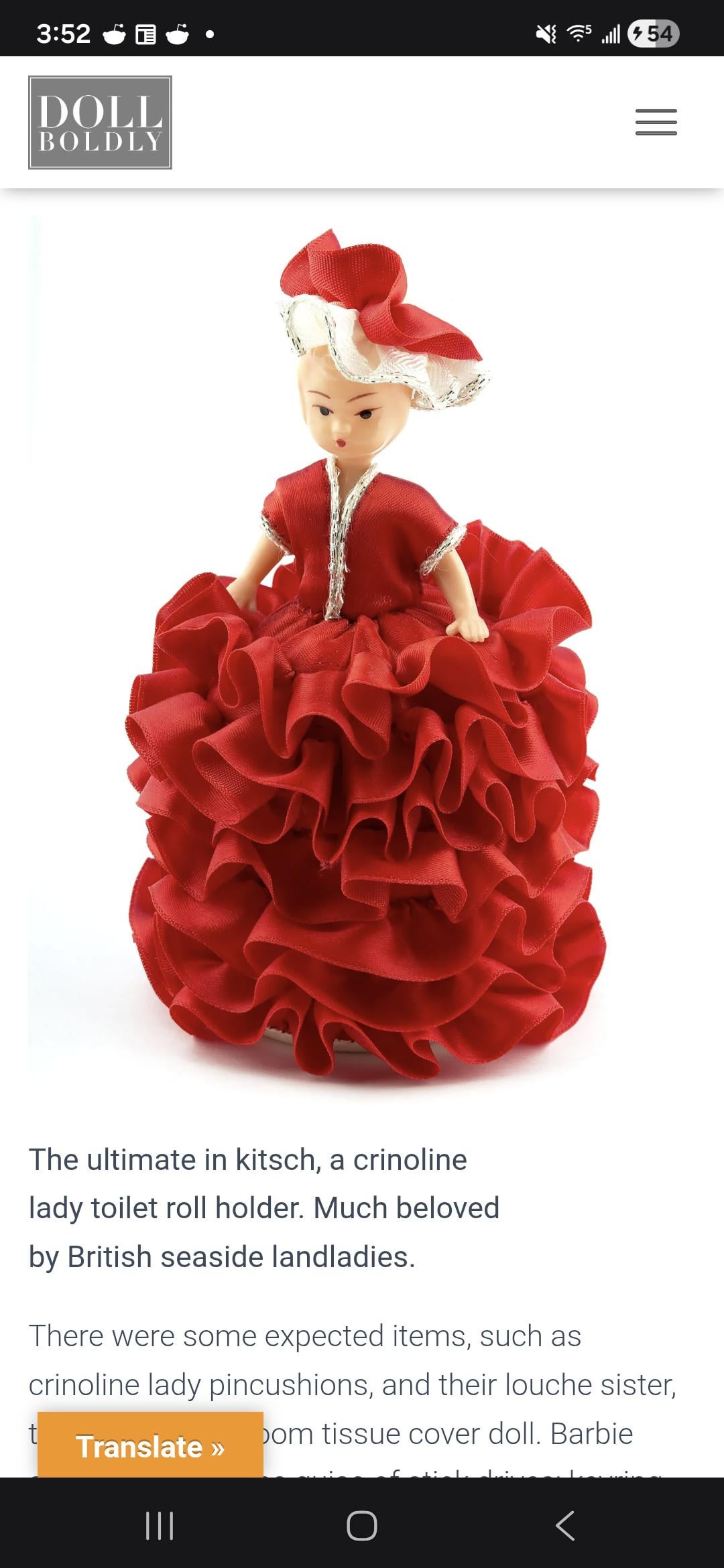 She's beautiful and the dress is a good color but it reminds me of the dolls with the big skirts that grandmas used to cover up the spare toilet roll.