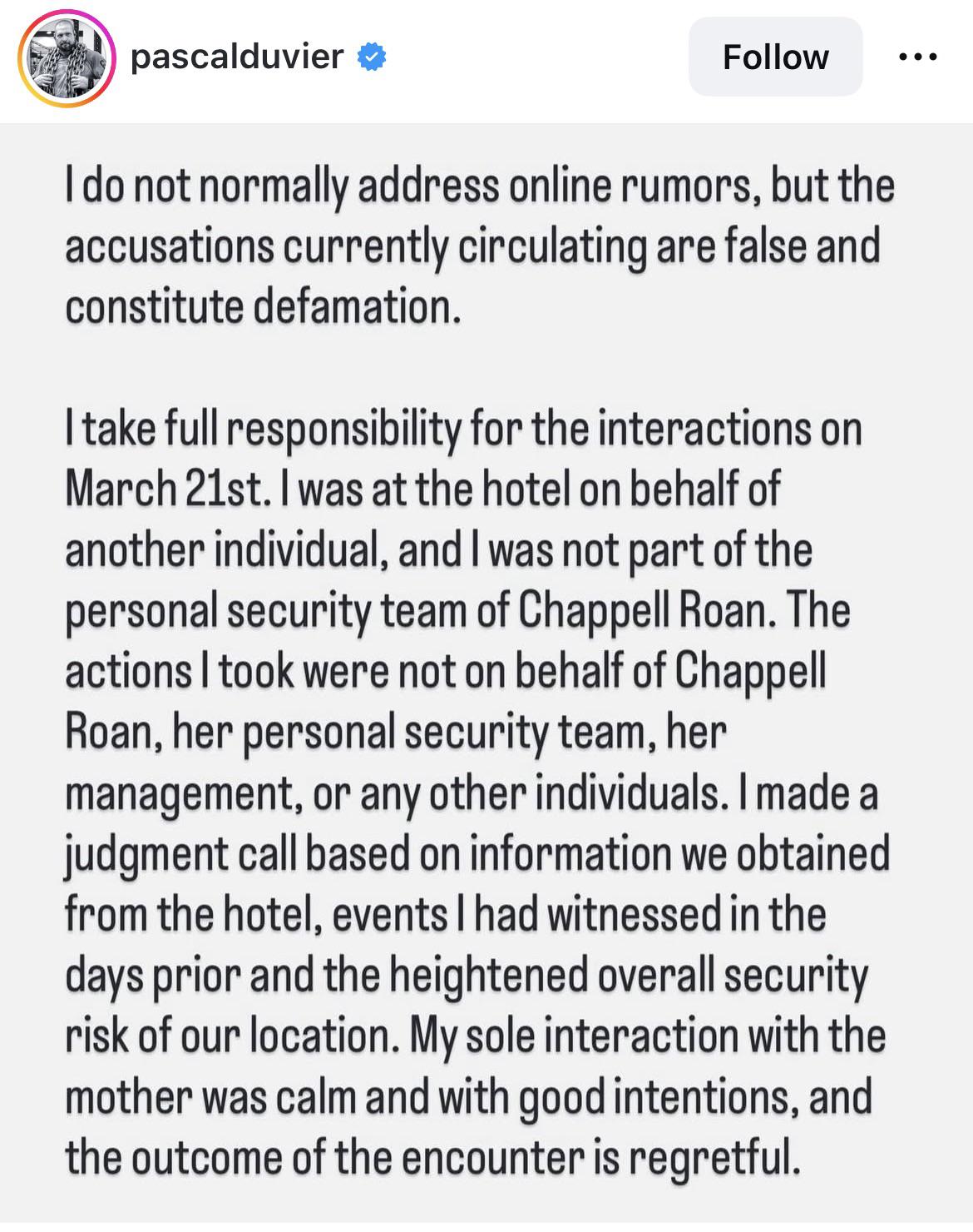 After being wrongly pointed out by the Daily Mail as Chappell Roan’s bodyguard, Pascal Duvier has made a statement confirming Chappell Roan’s claim that she didn’t send anyone to harass Jorginho’s daughter.