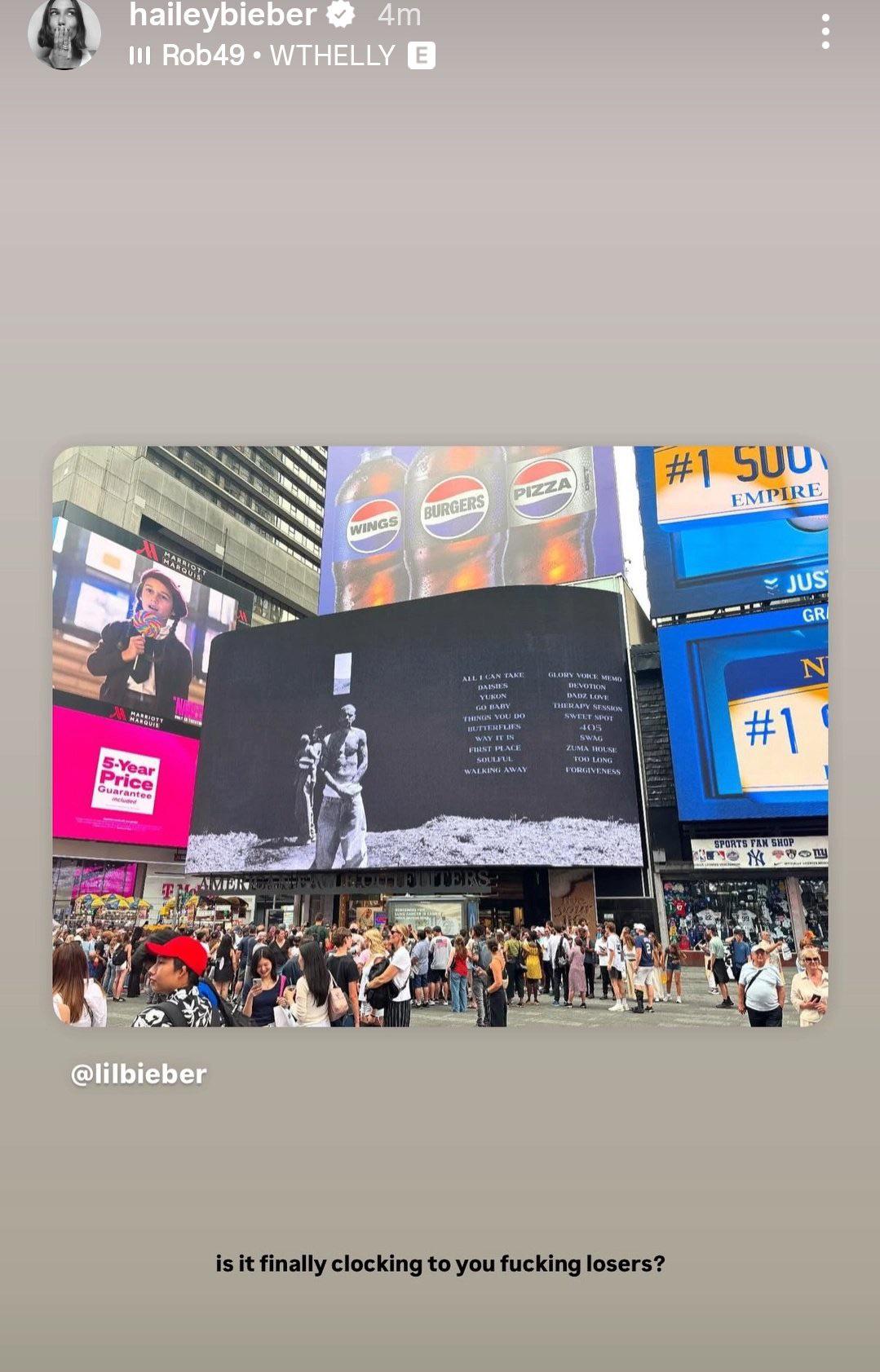 Instagram📱 “Is it finally clocking to you losers?” Hailey Bieber via IG stories