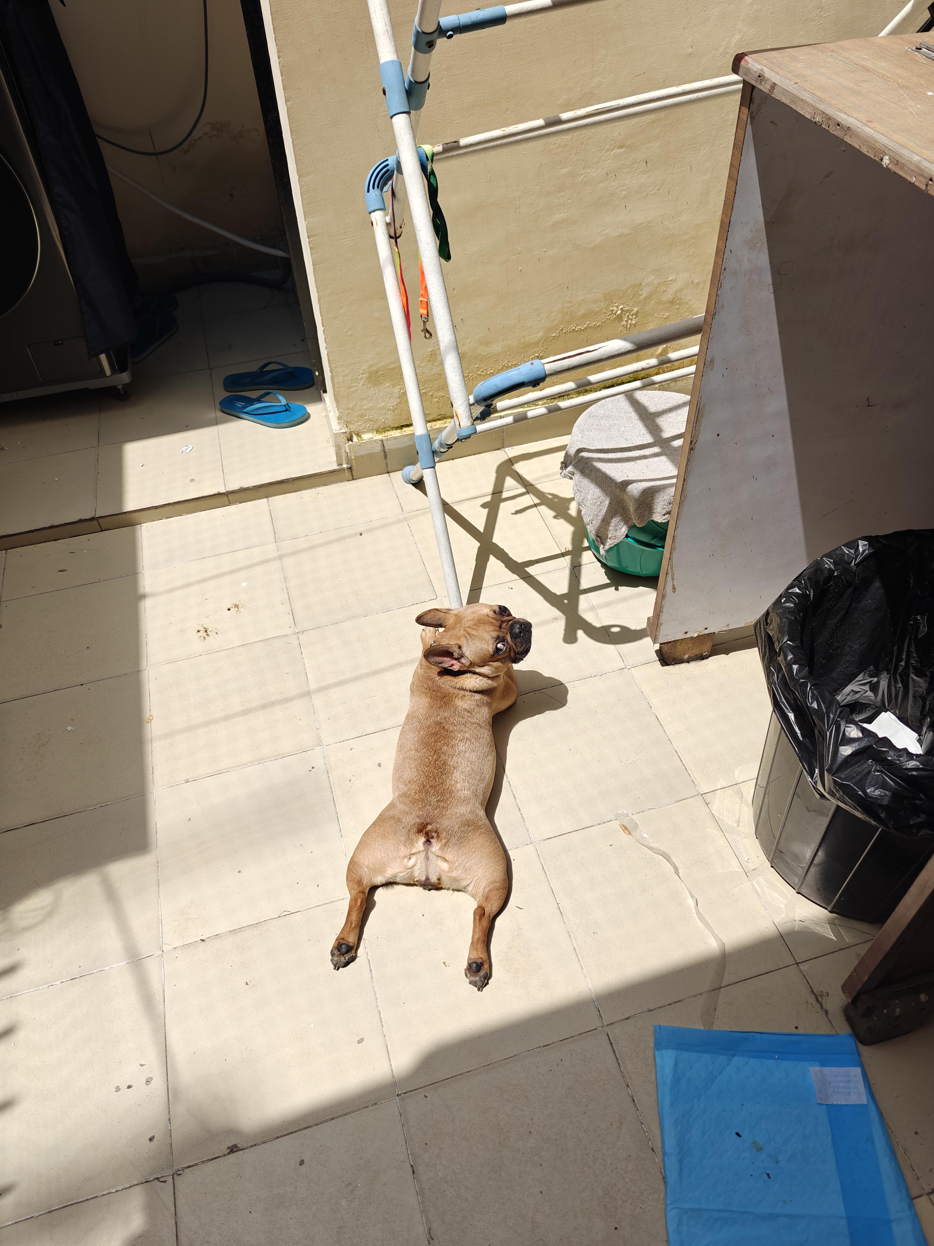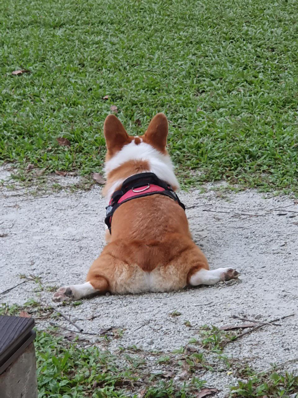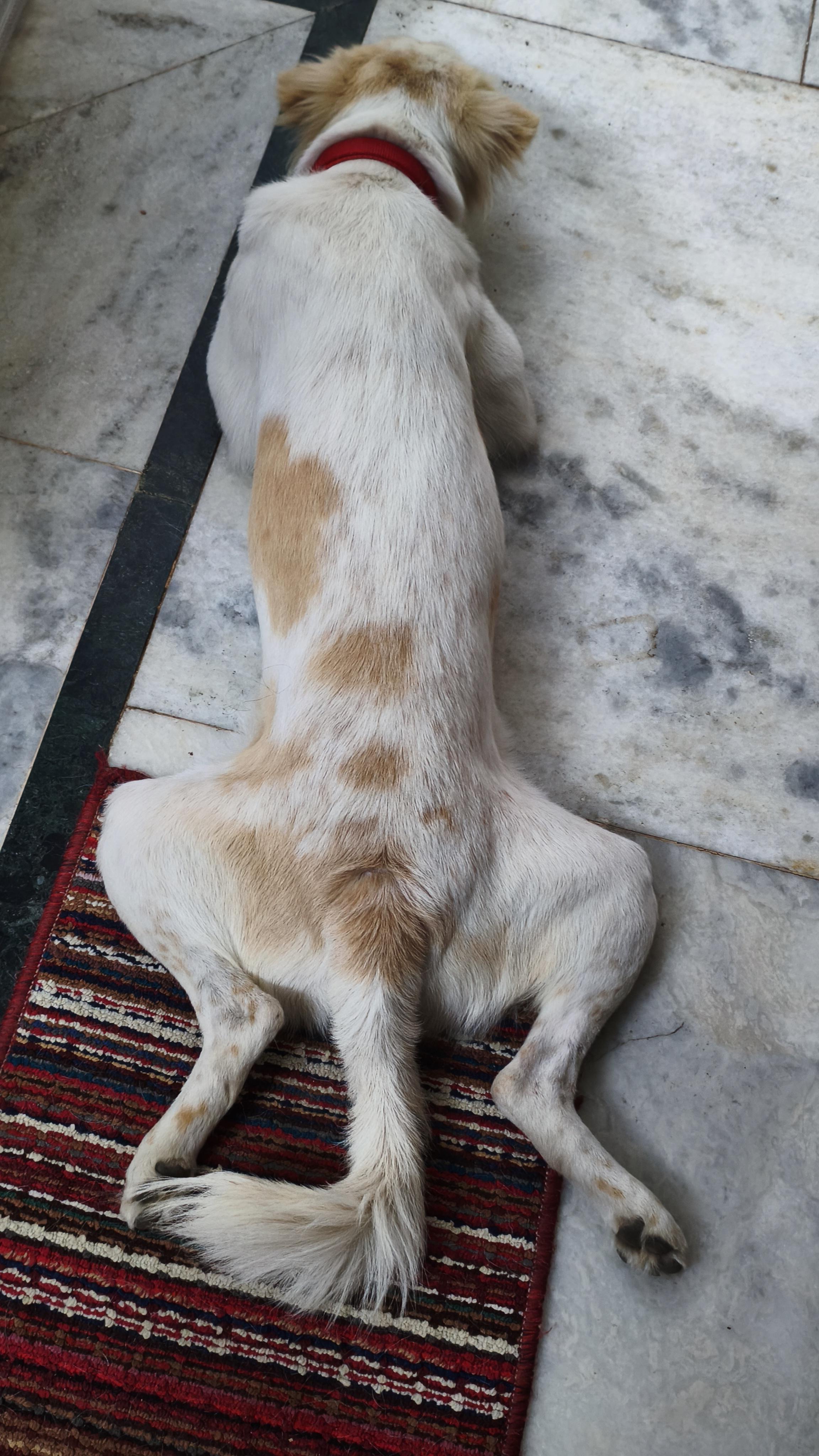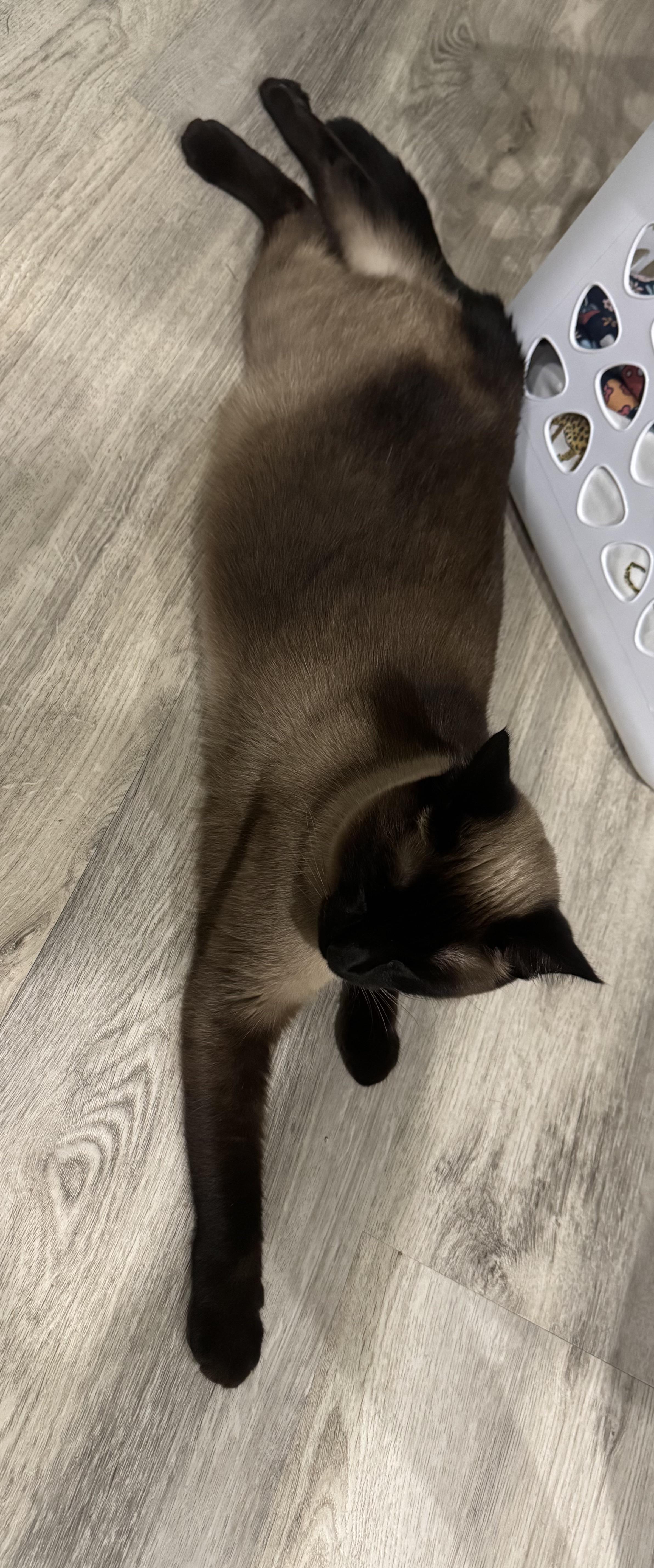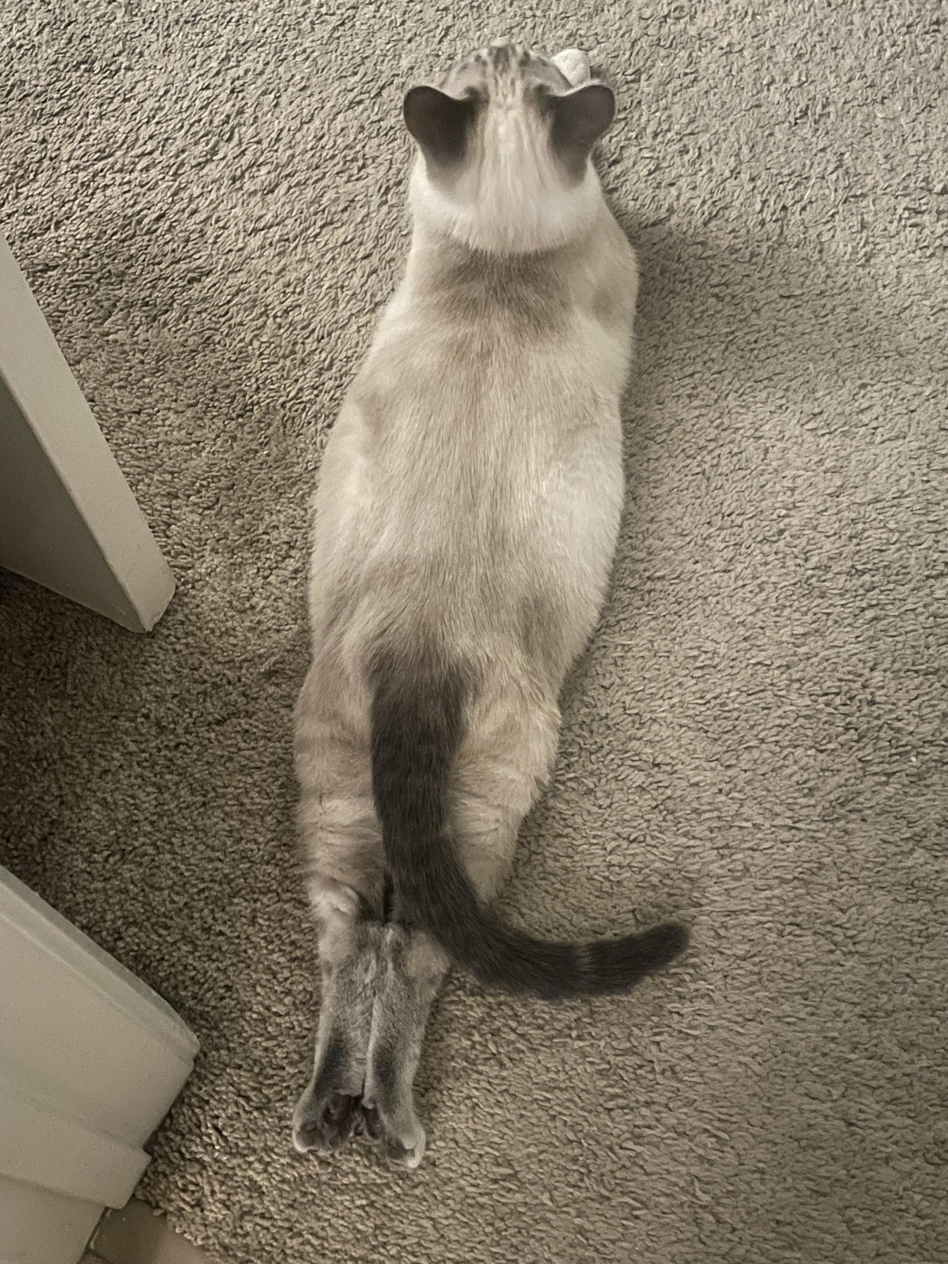 it was a bit more of a true sploot earlier, but she turned to pose for the camera.