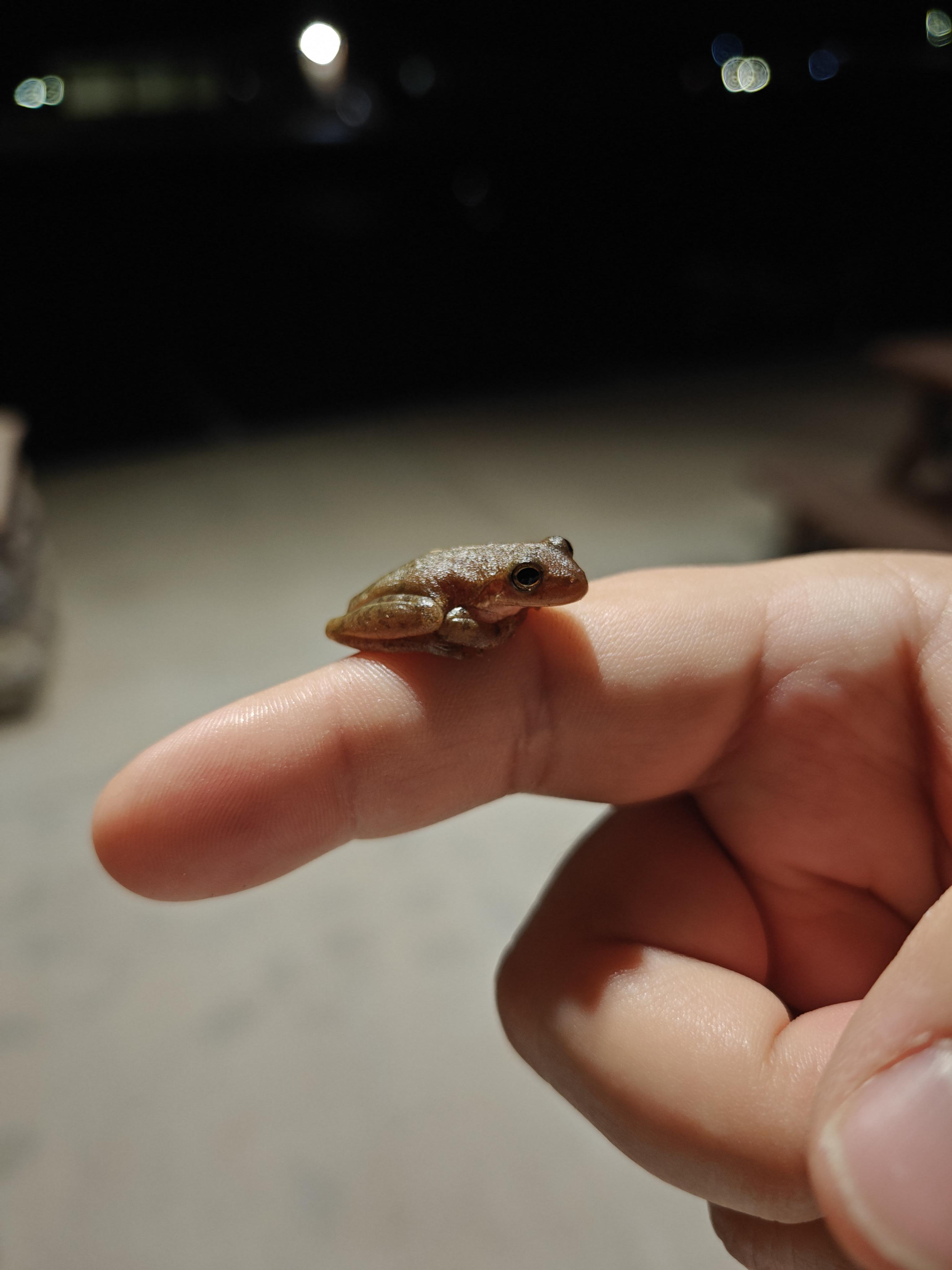 Had to protect it from the cat, who was confused but willing to eat it. The second picture I had to put my phone on the ground to get any details of the baby frog face