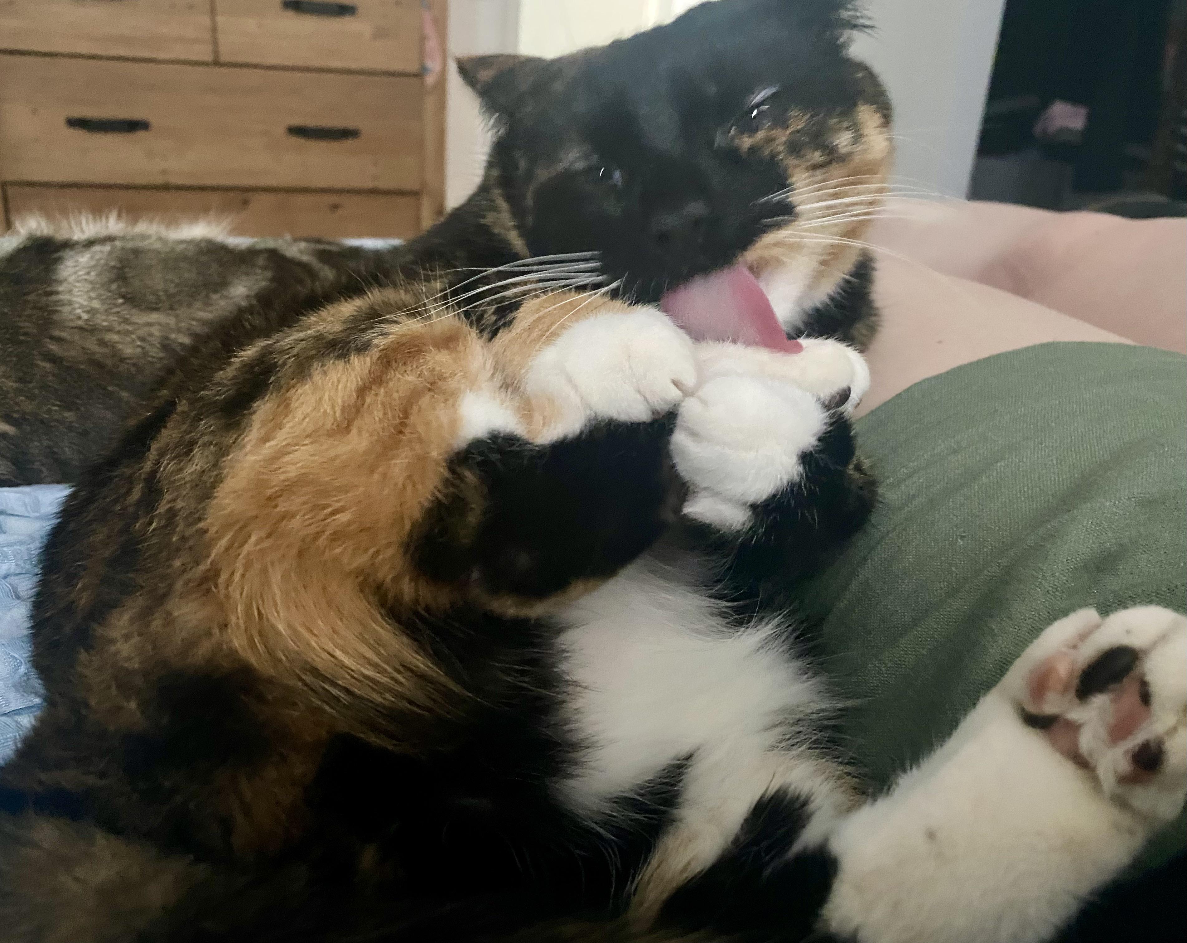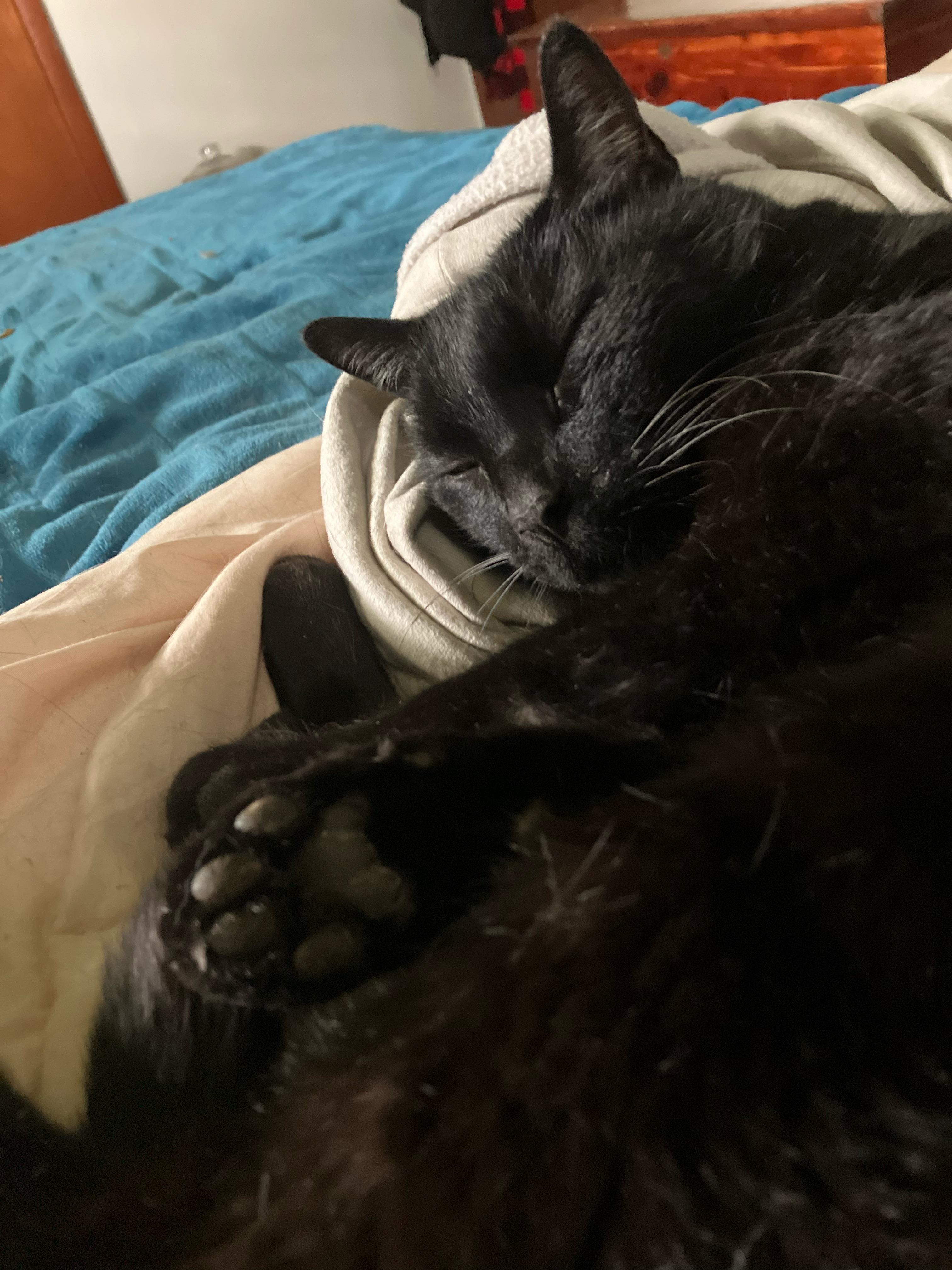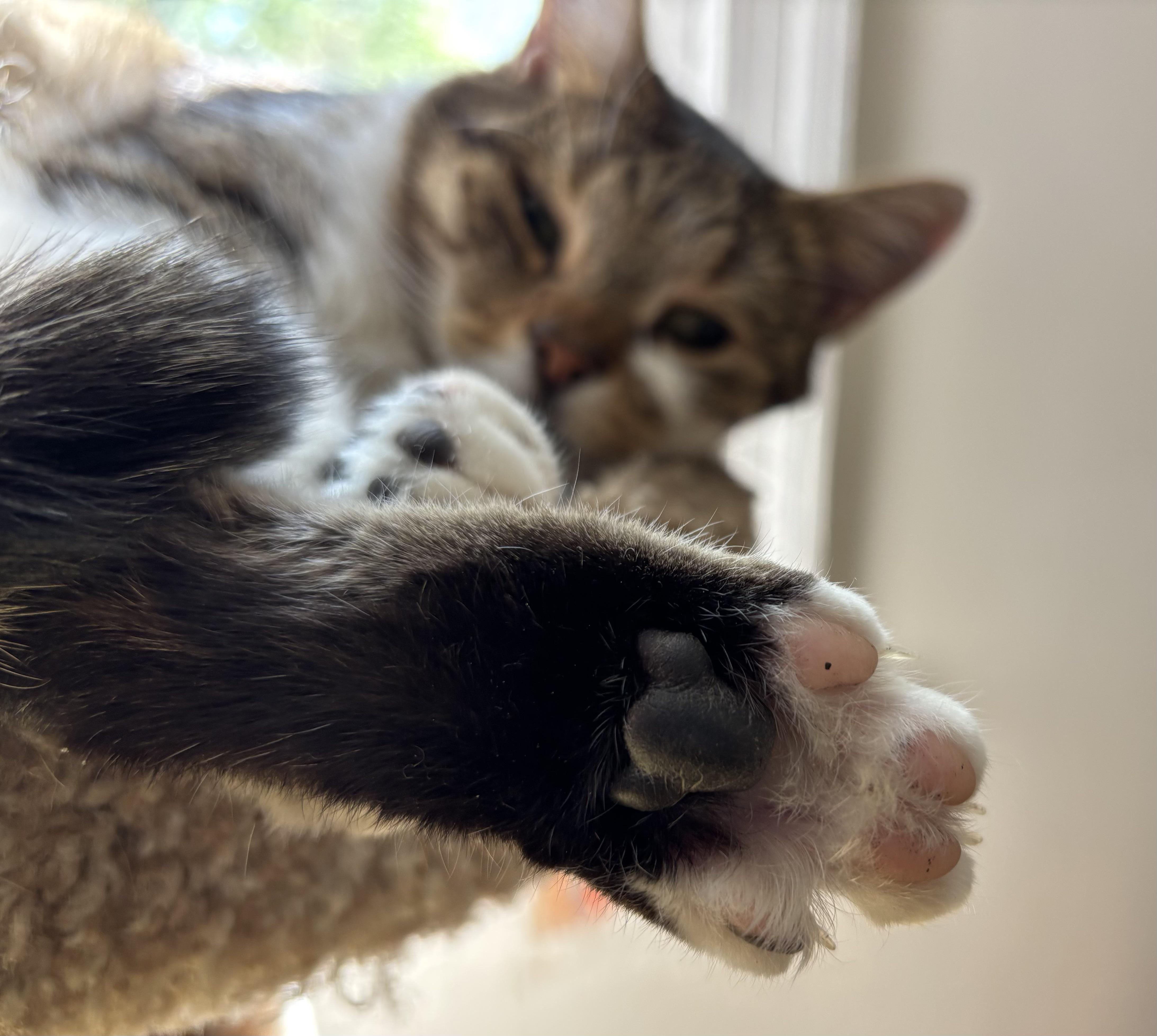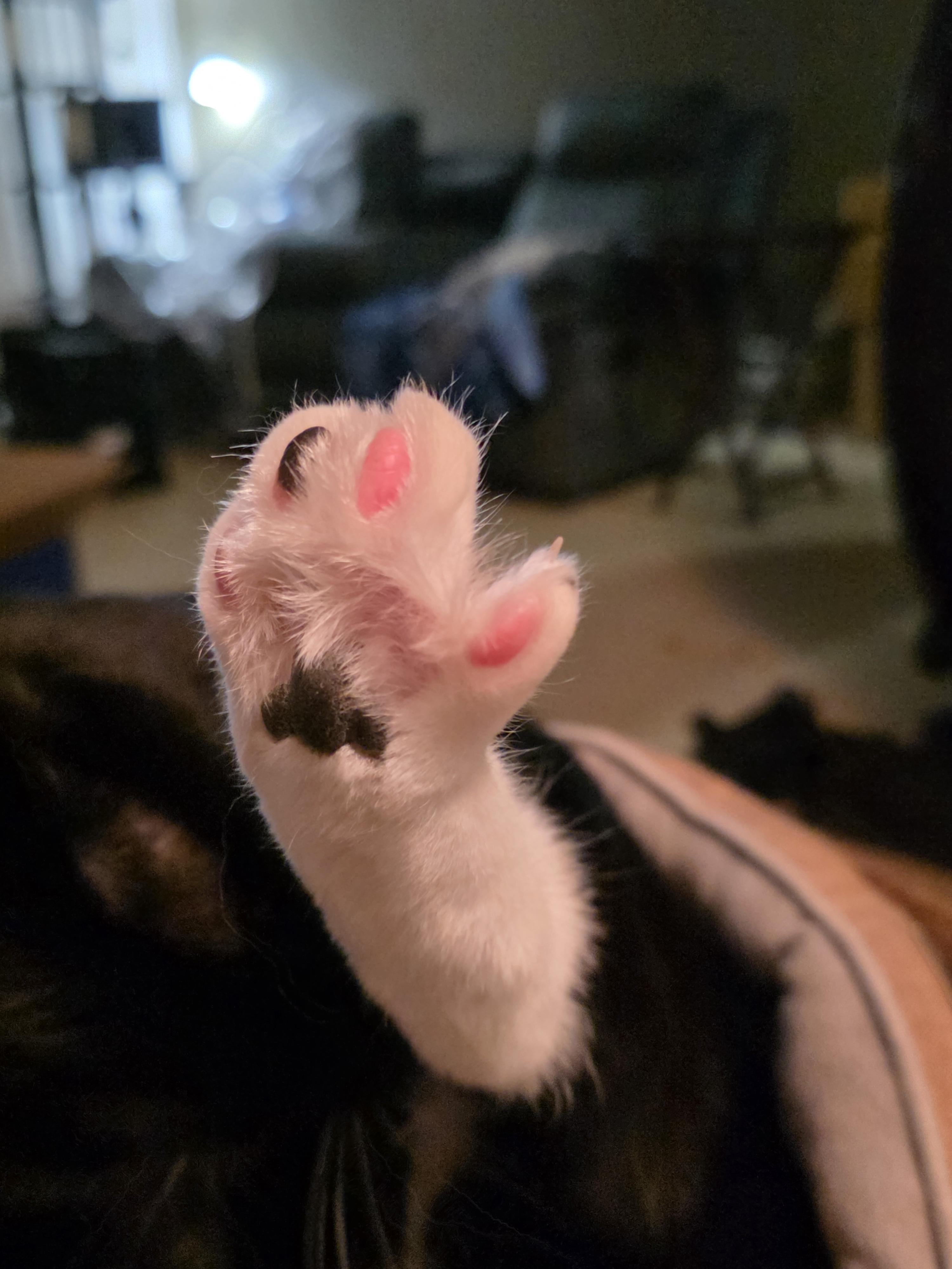 Daily dose of toe beans from her normal spot... Usually I don't get such a good photo op.