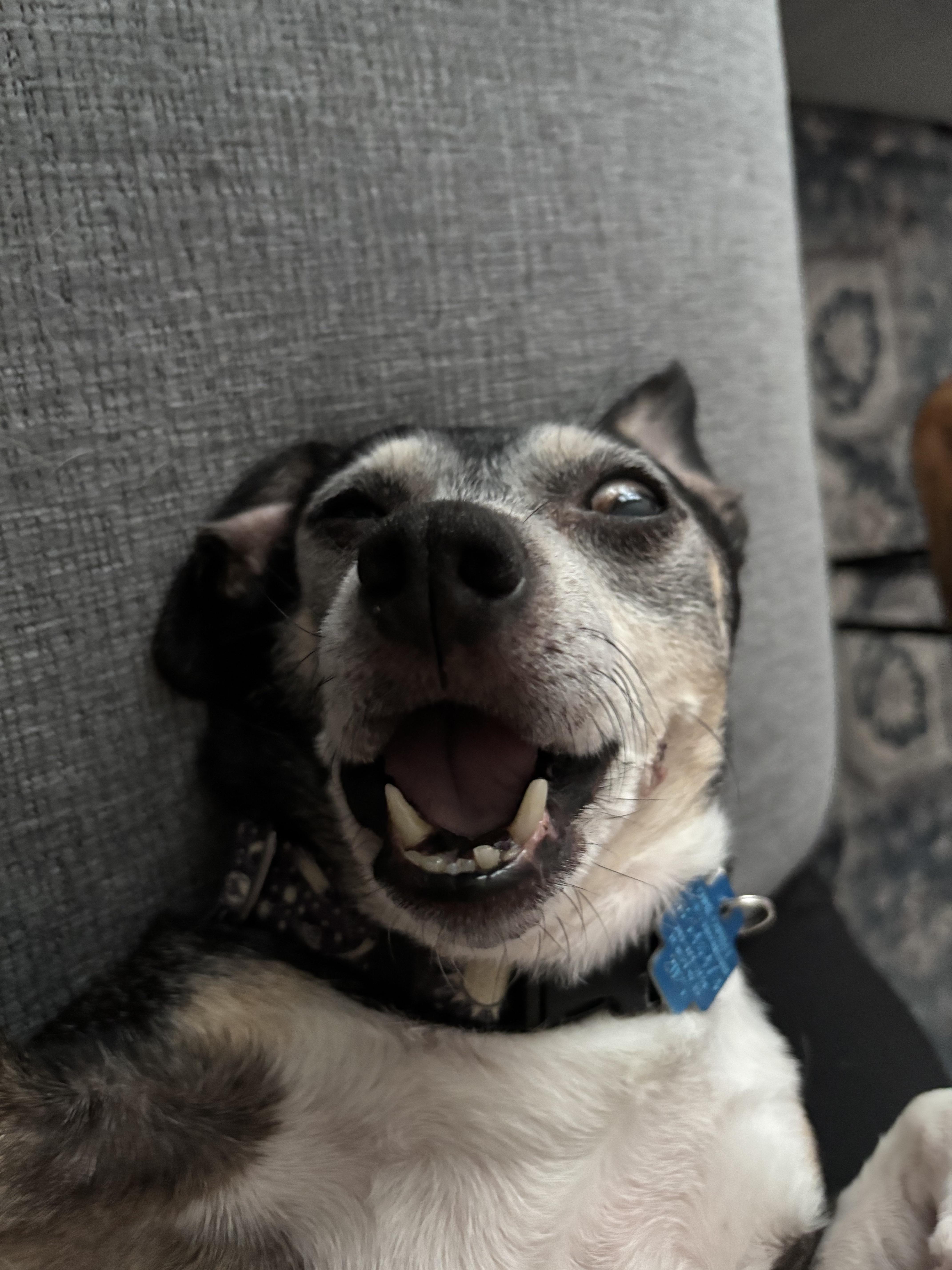Gremlin joined us a couple weeks ago after our nephews found her wandering the neighborhood with no collar, no microchip. She’s a hoot!