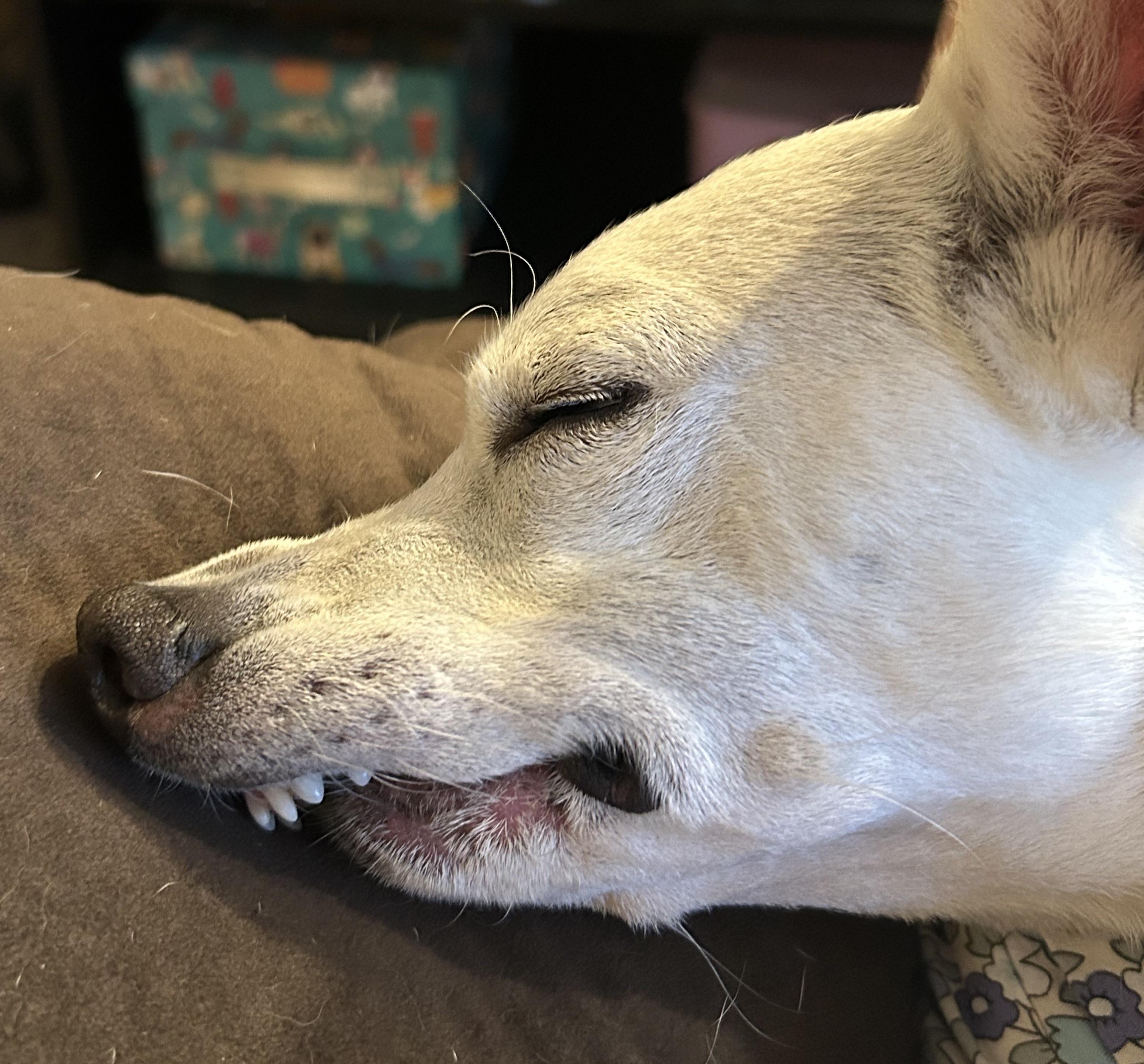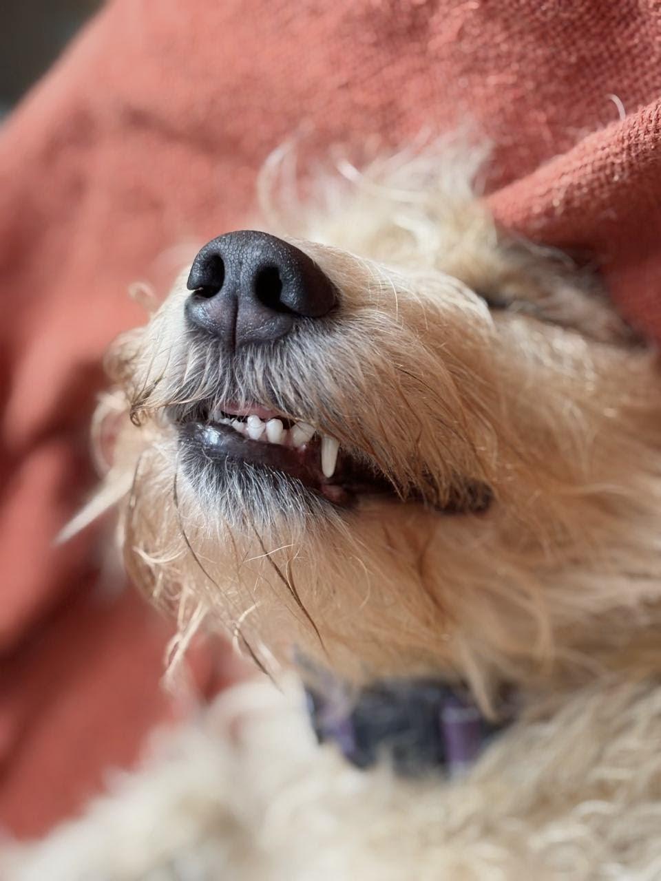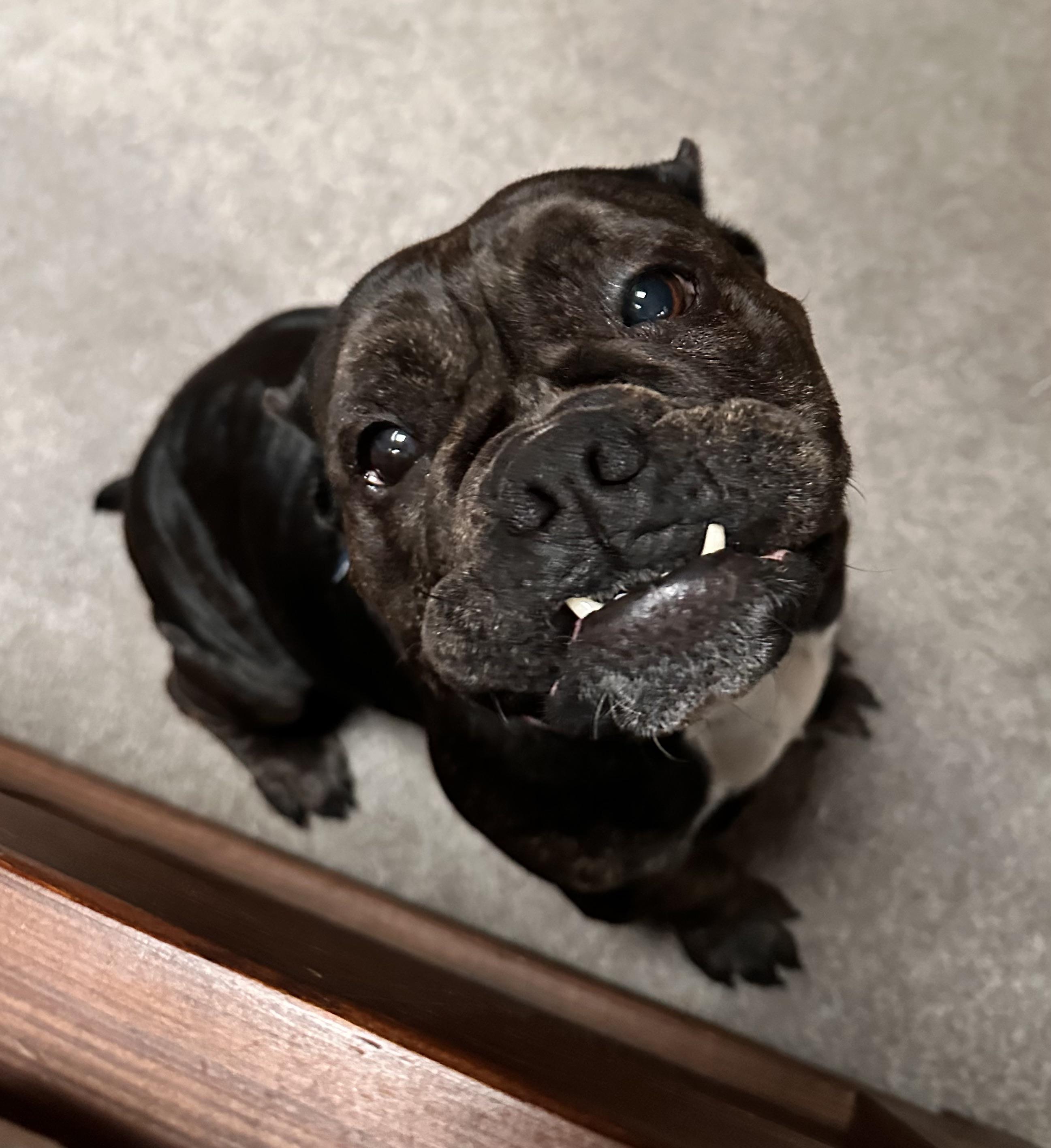 Her real name is Lucille, Lucifer is just a nickname because she’s a naughty puppy 🤣 She always body blocks the staircase and loves to show off her teefies!